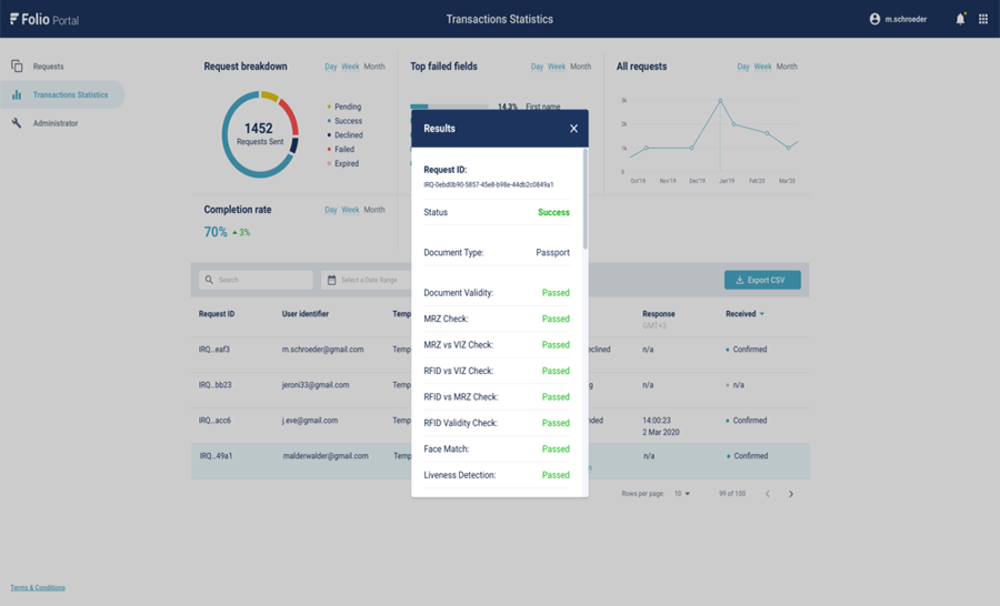 Intégration rapide et simple sur tous les canaux numériques. Que vous soyez sur le web, mobile ou les deux, l'intégration de la plateforme Folio est rapide et simple avec notre API, fournissant une véritable solution d'identité numérique omnicanal.