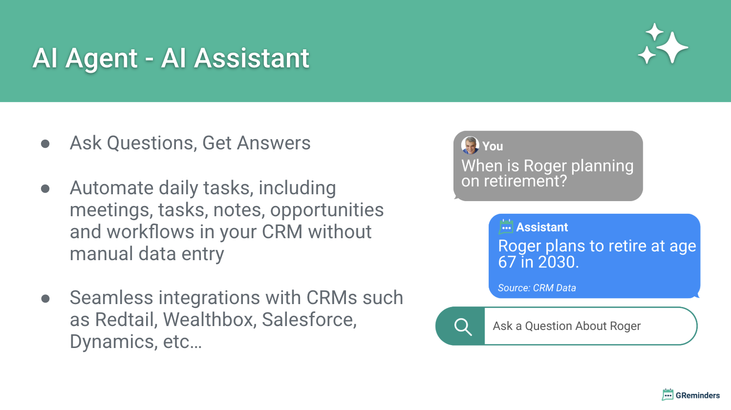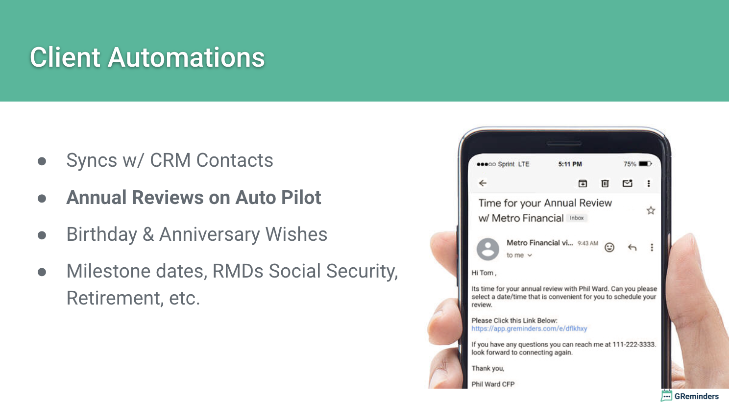 Ce que je trouve le plus utile avec GReminders, c'est son intégration directe avec RedTail. Étant donné que RedTail est l'un des outils clés sur lesquels je compte pour gérer ma pratique, avoir des intégrations transparentes est crucial pour moi. J'apprécie vraiment la commodité d'avoir essentiellement une fonctionnalité de connexion unique avec GReminders et RedTail. Avis collecté par et hébergé sur G2.com.