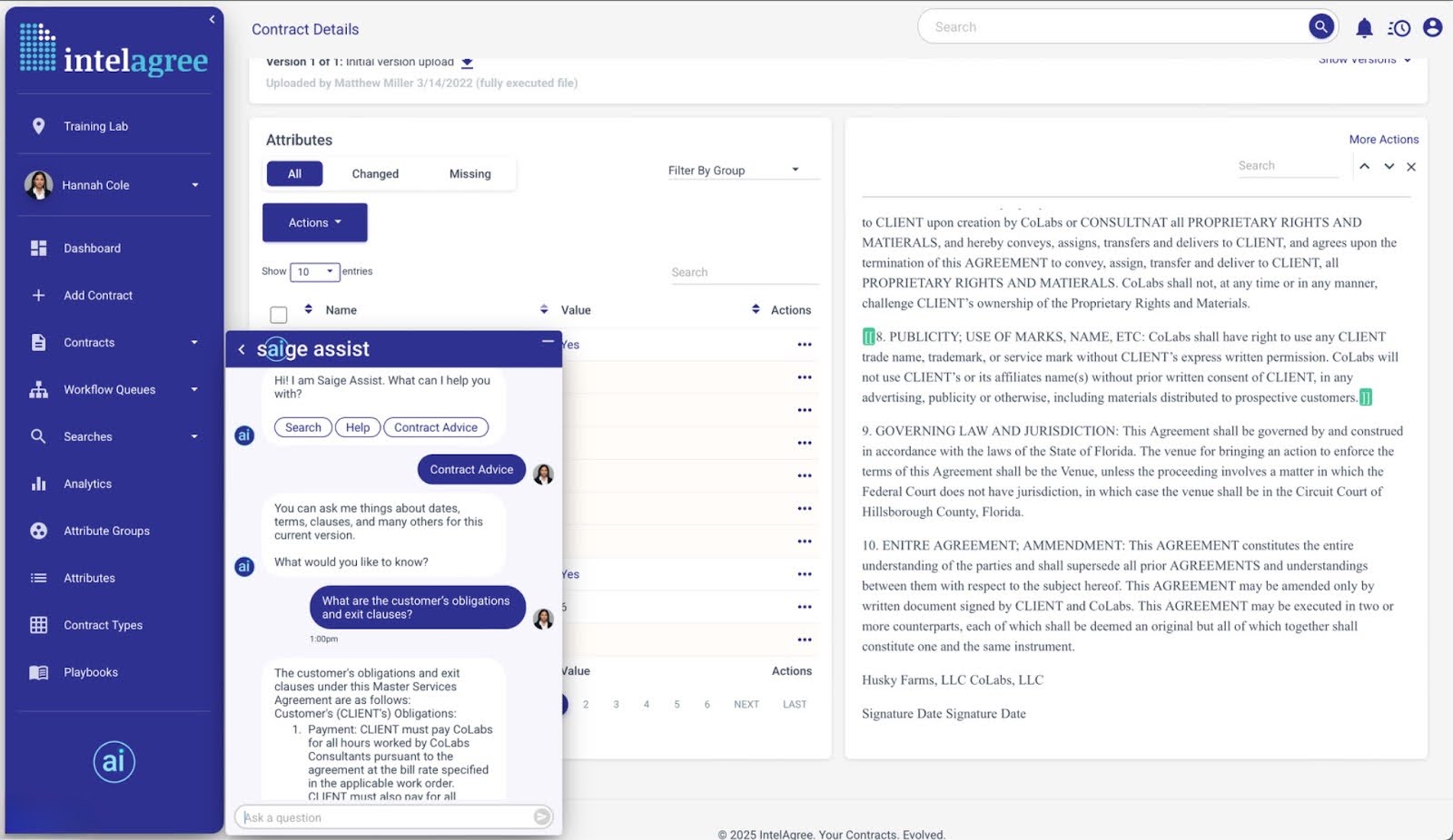 IntelAgree est une solution SaaS facile à utiliser qui génère des contrats puissants en un clin d'œil grâce à l'intelligence artificielle. IntelAgree est facile à utiliser et s'intègre parfaitement avec vos outils et processus de contrat existants.