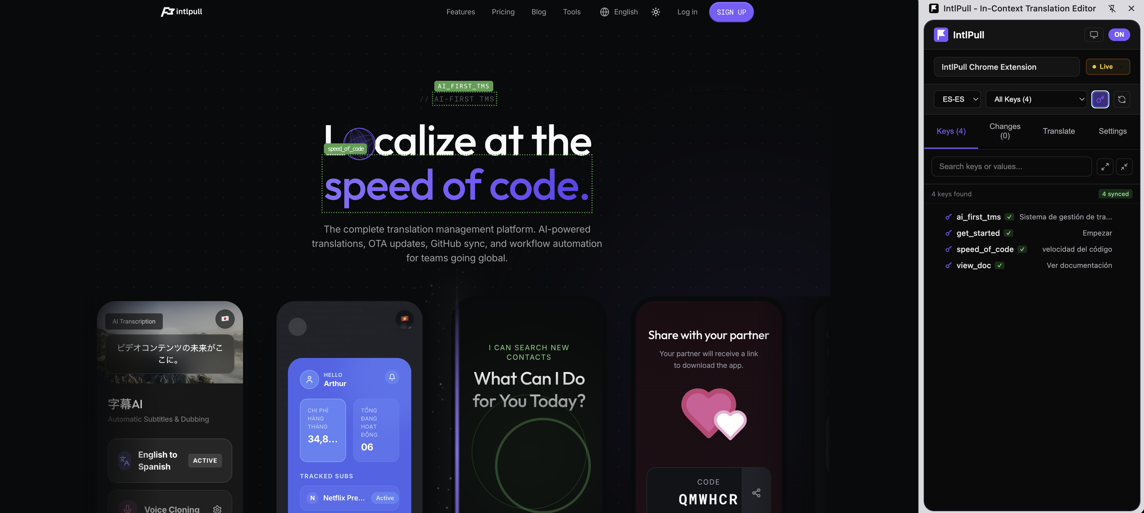 Avec une suite complète de fonctionnalités — y compris des intégrations avec des plateformes populaires de CMS, de développement et de design comme GitHub, Google Play, Figma et HubSpot — Crowdin automatise les mises à jour de contenu et accélère le processus de localisation. La plateforme offre des options de traduction flexibles grâce aux services linguistiques de Crowdin, un marché d'agences ou votre propre équipe de traduction.