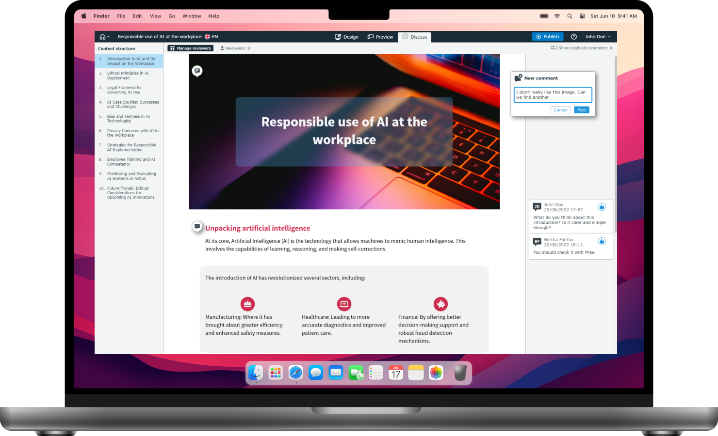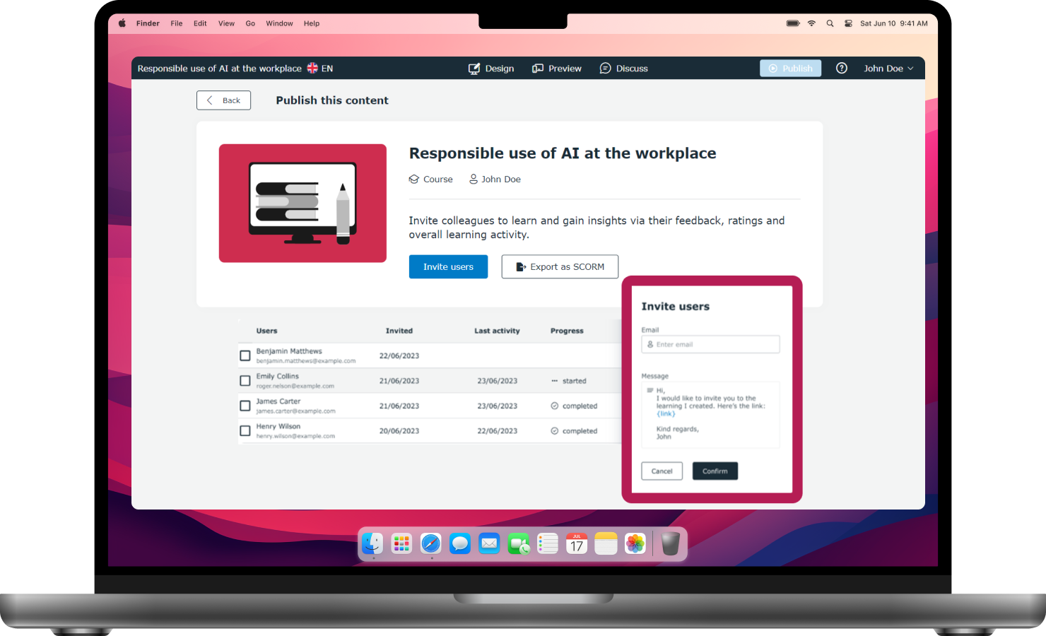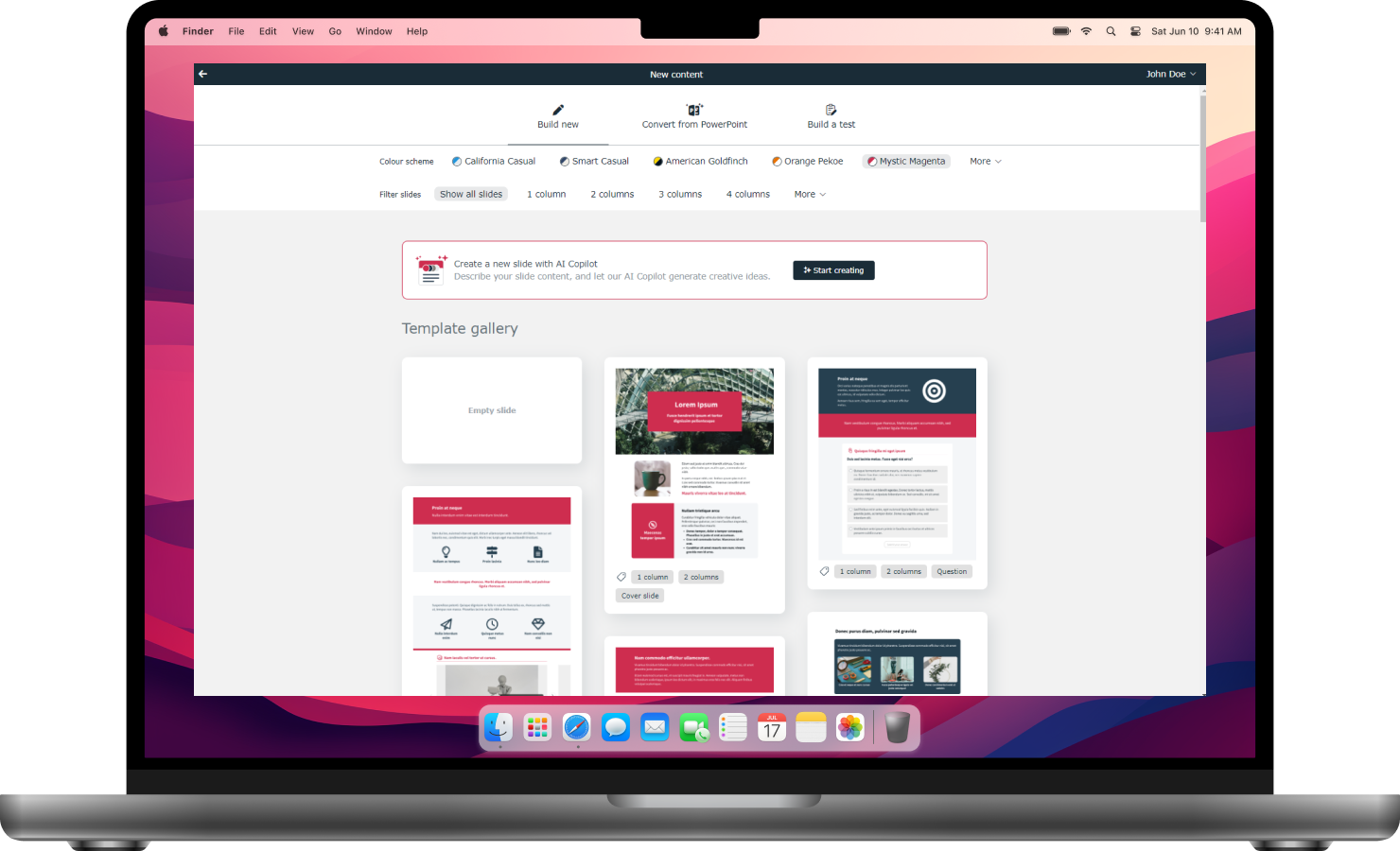iSpring Suite combine tout ce qui est nécessaire pour créer du contenu de formation professionnel. Disponible à la fois comme un module complémentaire PowerPoint et un espace de travail cloud, il offre une mise en page intuitive, des plans flexibles et un ensemble complet d'outils pour concevoir des cours modernes, tout en rendant le processus plus rapide et plus rentable.