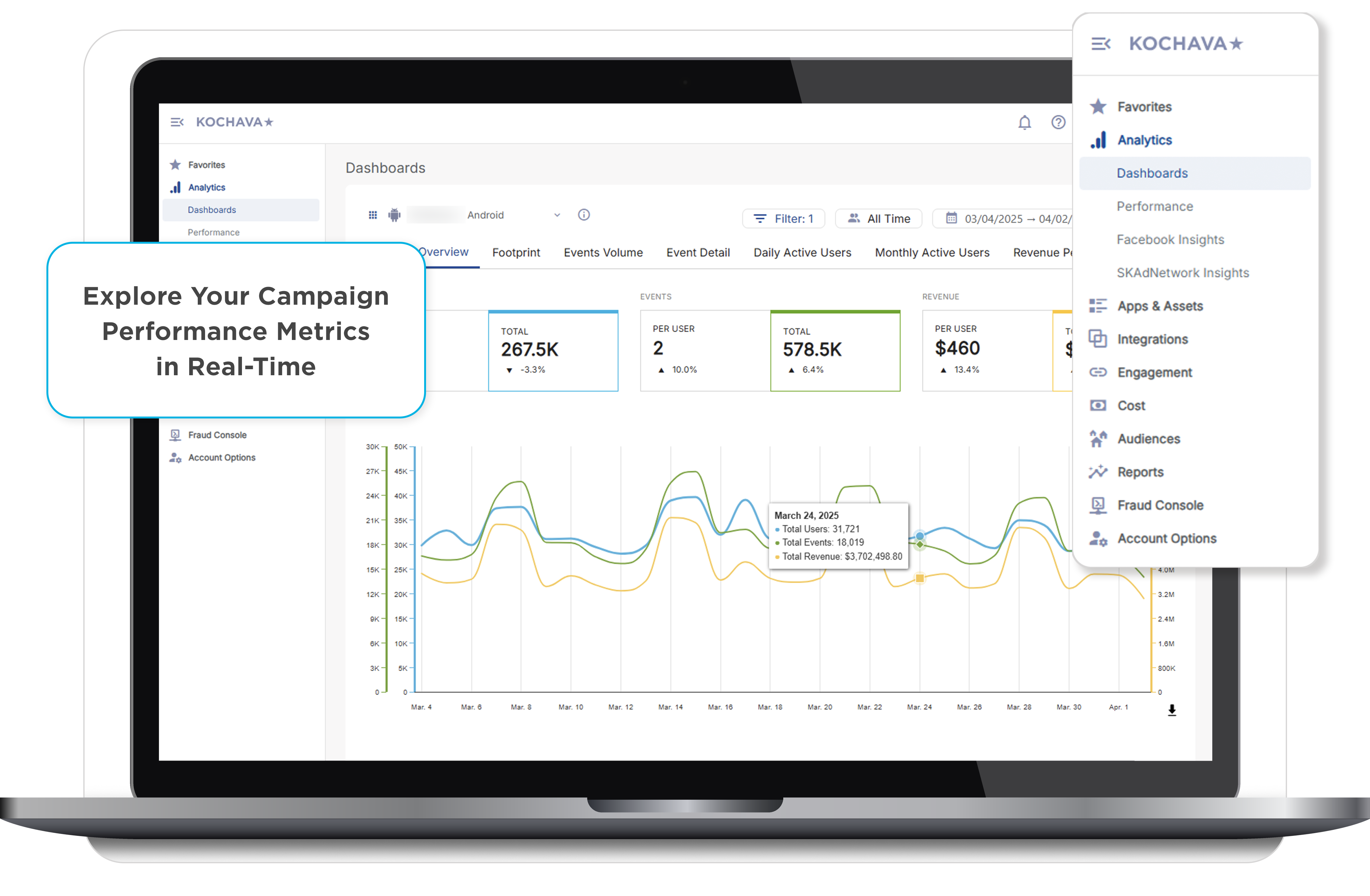 Le soutien dédié et la nature pratique de l'équipe Kochava, ainsi que les intégrations partenaires étendues qui existent. Ils sont également utiles pour ajouter de nouvelles intégrations pour de nouveaux partenaires publicitaires si nécessaire. Ils disposent de nombreuses fonctionnalités à exploiter sur leur plateforme ainsi que de partenariats qui peuvent vous être utiles, y compris Search Ad Maven. Avis collecté par et hébergé sur G2.com.