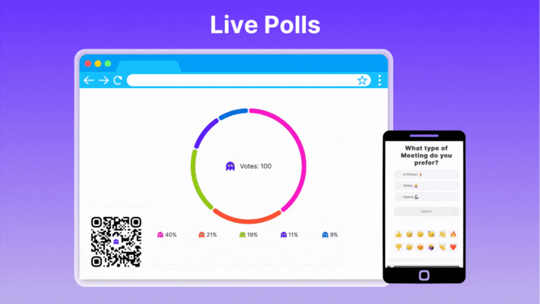 Un outil dynamique pour briser la glace, vous pouvez utiliser un sondage pour faciliter les décisions de groupe et recueillir des retours basés sur les votes. Engagez votre public avec des sondages en temps réel, en gardant les interactions vivantes et informatives.