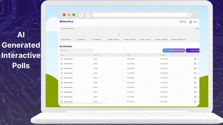 Obtenez des suggestions de sondages générées par l'IA sur https://app.meetmoji.com