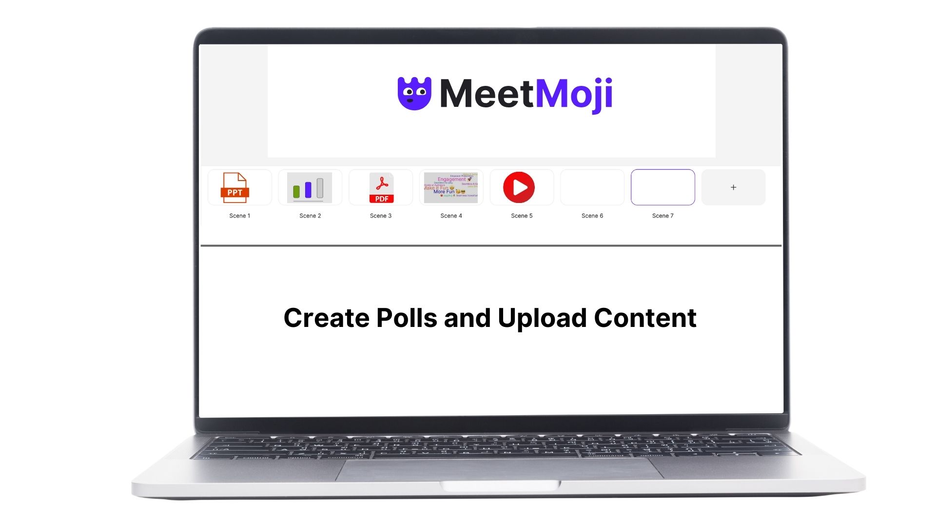 Vous cherchez à présenter plus que des diapositives et des sondages ? Cliquez sur "Présenter dans MeetMoji" pour combiner sans effort vos diapositives avec des PDF, des sites web, des applications intégrées, des vidéos, des sondages et gérer les questions-réponses. Cela vous permet de livrer une présentation plus dynamique ou d'orchestrer un événement hybride complet. Pour le découvrir, rendez-vous sur https://meetmoji.com