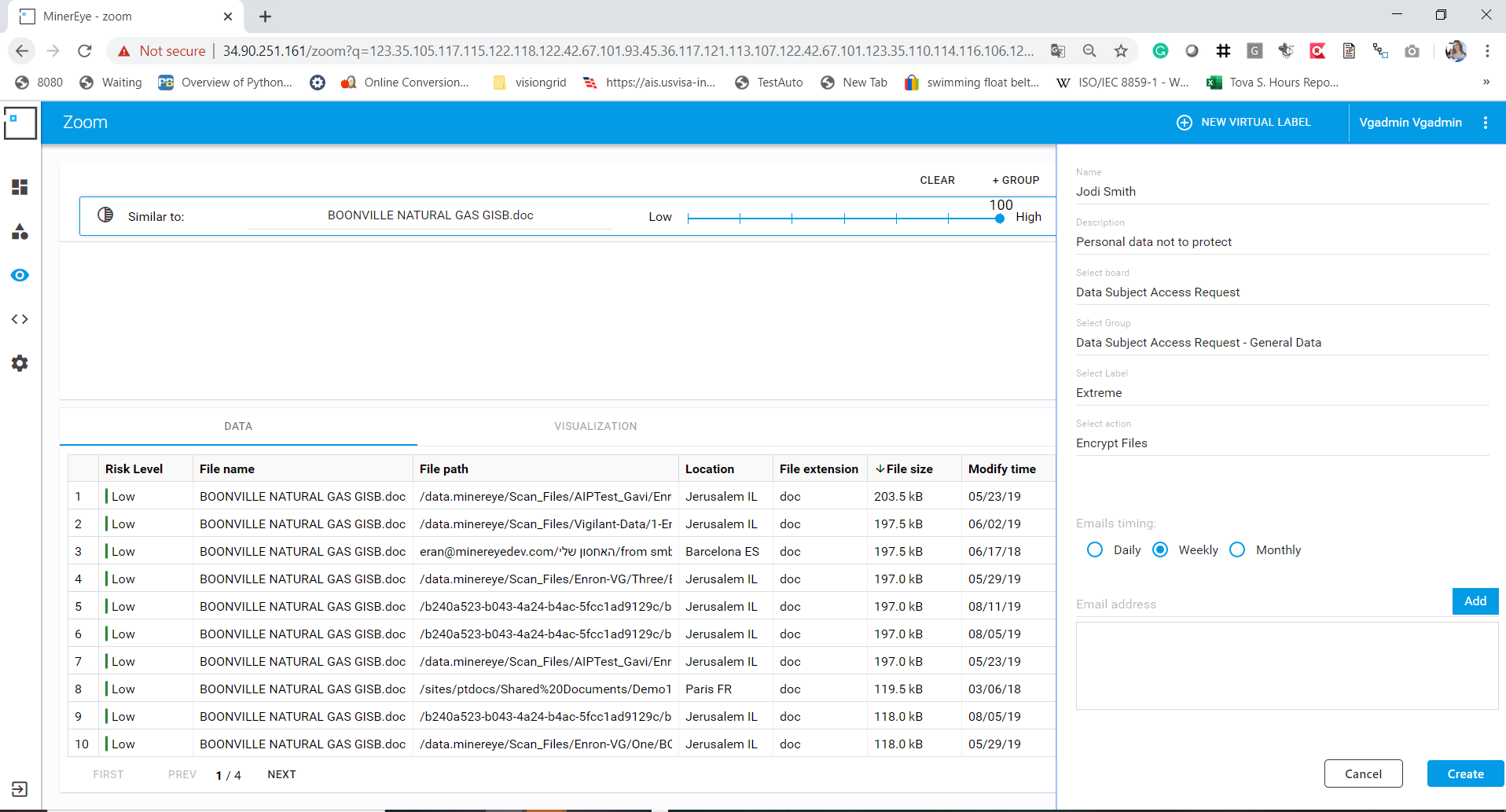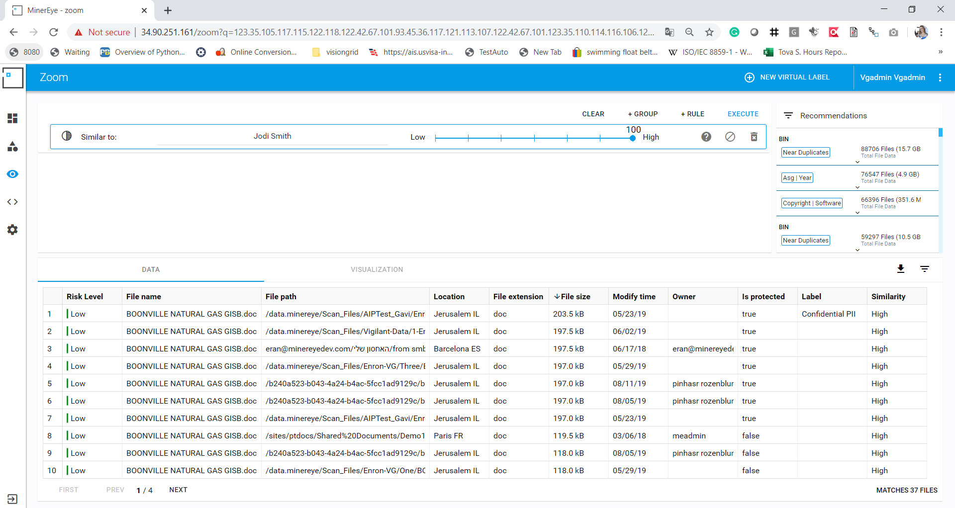 MinerEye peut analyser des centaines de milliers de fichiers non structurés et trouver des enregistrements personnels uniques conformes au RGPD/CCPA. Montrez-lui des exemples de types d'enregistrements et de niveaux de classification et il peut analyser l'ensemble de votre inventaire et faire correspondre les fichiers aux types d'enregistrements et aux niveaux de classification. Montrez-lui un document confidentiel et il trouvera tous les documents identiques et similaires partout sur vos disques. C'est la réponse la plus simple à "quelles données ai-je et dois-je conserver sur les téraoctets de données non structurées". Avis collecté par et hébergé sur G2.com.