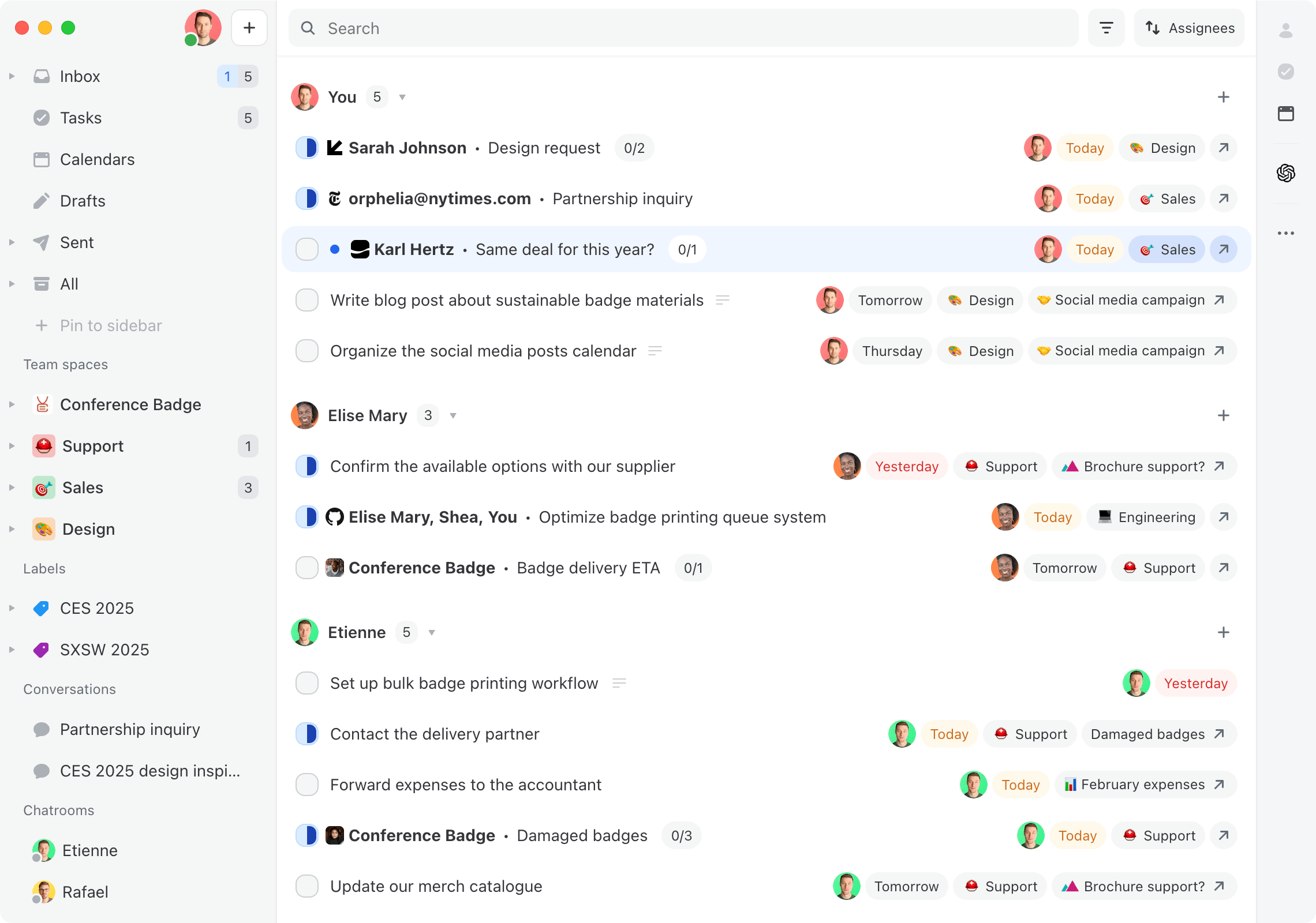Le principal, c'est que nos boîtes de réception partagées (support@, info@, etc.) ne sont plus confuses. Avant, nous étions tous dedans, et nous n'avions aucune idée de qui répondait à quoi.