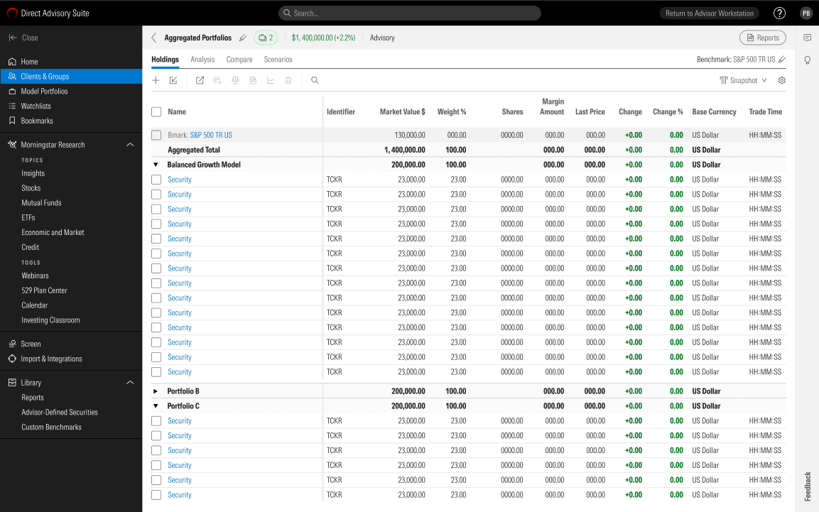 J'aide à construire des investissements sur notre plateforme de tenue de registres. Morningstar est un outil extrêmement utile lorsque j'ai besoin de rechercher des détails sur un investissement et sa disponibilité. J'utilise Morningstar fréquemment, presque quotidiennement. Nous avons eu une réunion avec l'équipe de Morningstar il y a quelques mois pour mettre en œuvre des améliorations de produit basées sur nos suggestions, et ils ont été très réceptifs à nos retours ! Le produit a été très convivial et facile à utiliser. Avis collecté par et hébergé sur G2.com.