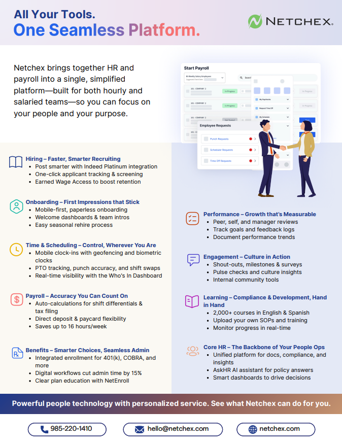 Netchex excelle dans l'engagement client, offrant un support pratique et des conseils clairs à travers chaque module et processus. Leur équipe s'assure que vous n'êtes jamais laissé à naviguer seul dans le système, rendant la plateforme accessible et conviviale. Netchex propose des ressources de formation étendues et de multiples canaux de communication, tous accessibles via leur plateforme, ce qui facilite l'obtention d'aide lorsque vous en avez besoin. Dans l'ensemble, ils sont un partenaire SIRH fiable et solidaire. Avis collecté par et hébergé sur G2.com.