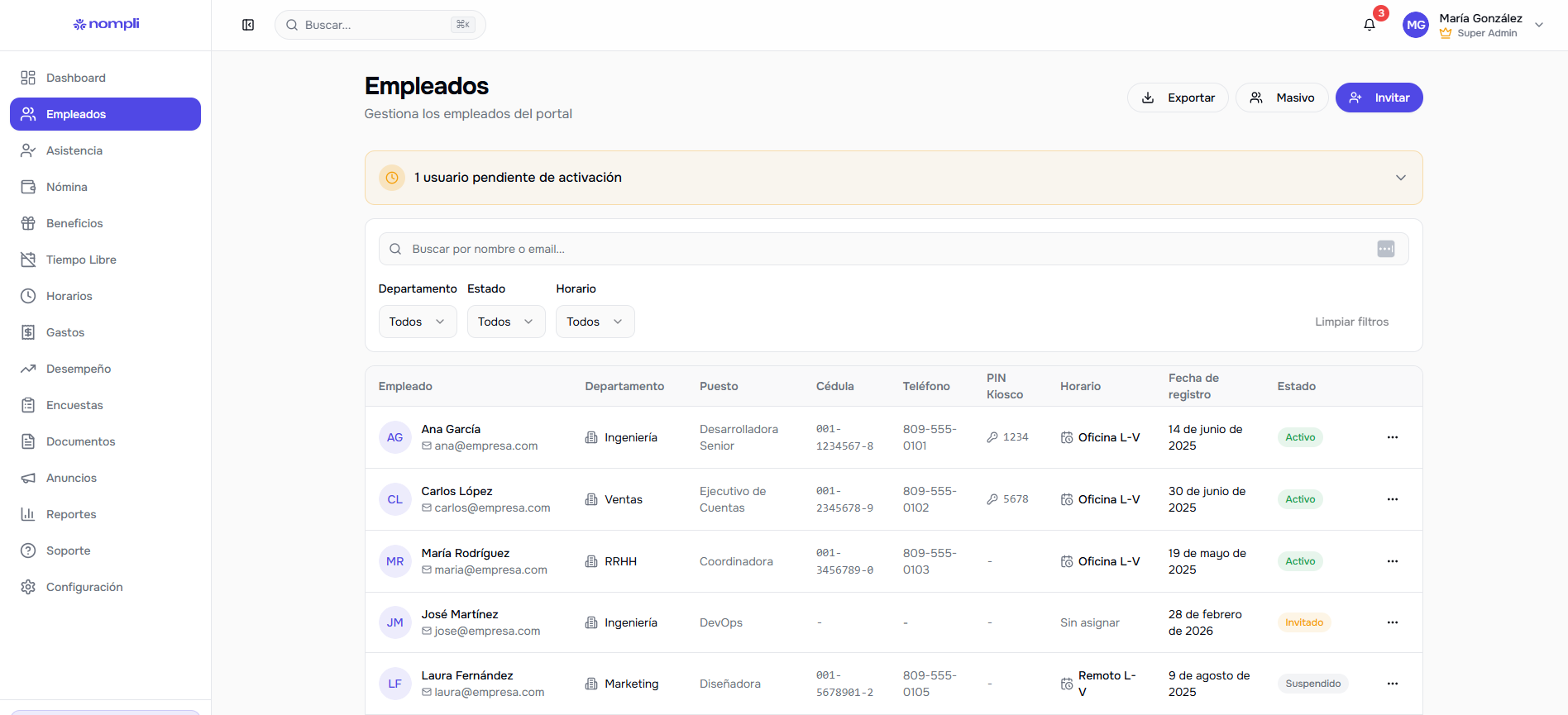 0 empleado Par mois