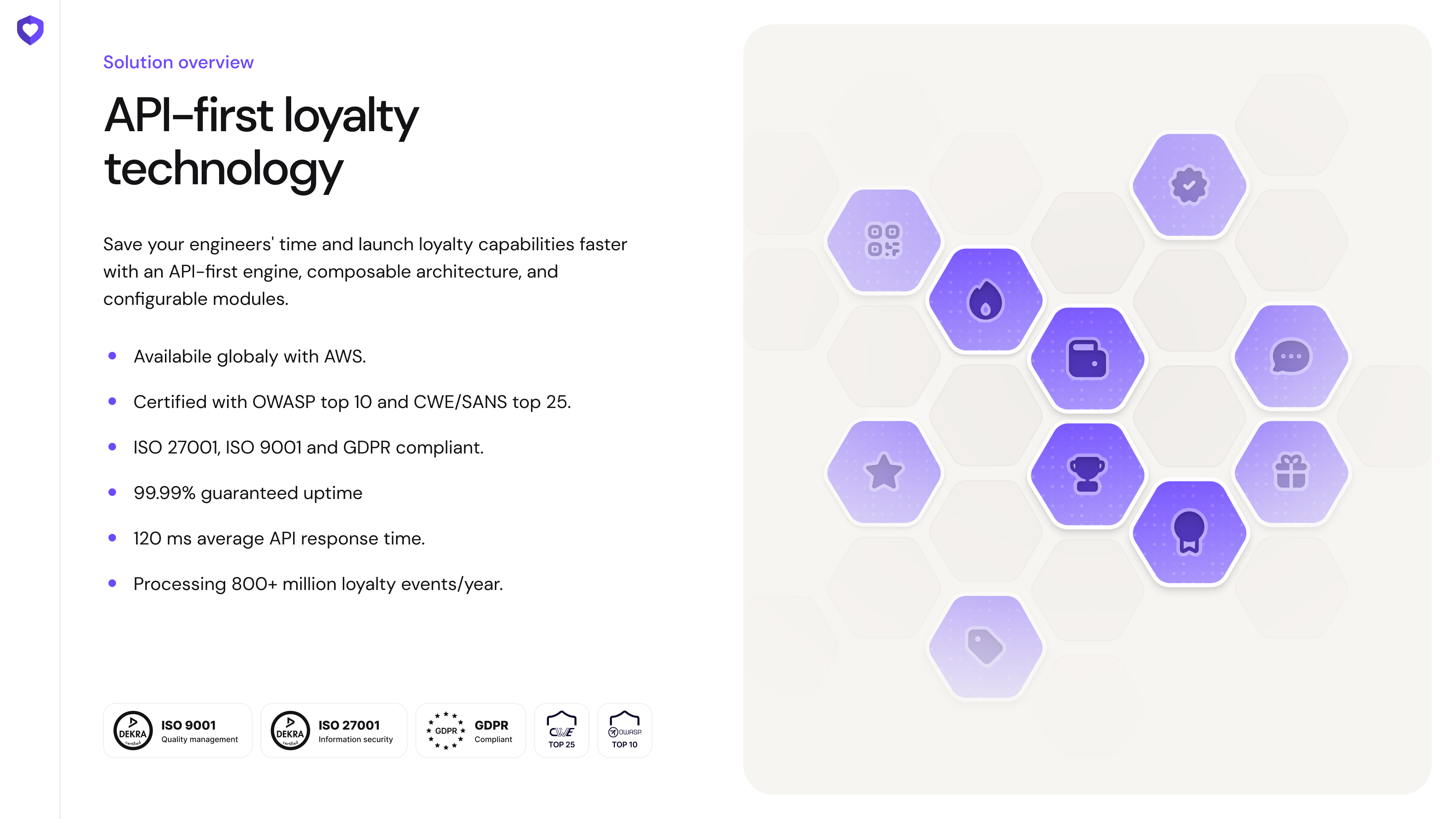 OpenLoyalty nous a permis de créer l'un des premiers (sinon le premier) programme de fidélité dans notre secteur. La flexibilité de la plateforme et la quantité de fonctionnalités nous ont permis de façonner la plateforme de fidélité parfaite pour nous. Leur équipe de réussite client est formidable à travailler avec, extrêmement amicale et toujours prête à nous soutenir dans toutes nos demandes. Leur API permet également d'intégrer la plateforme dans nos systèmes de manière transparente. Avis collecté par et hébergé sur G2.com.