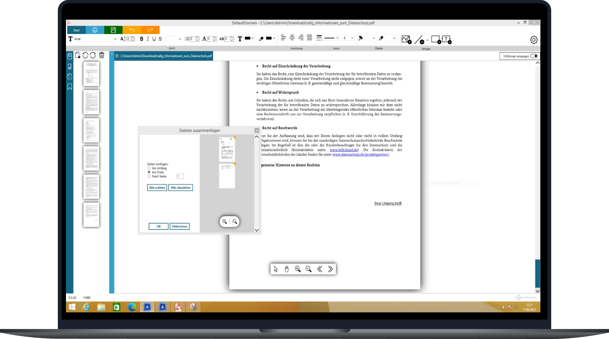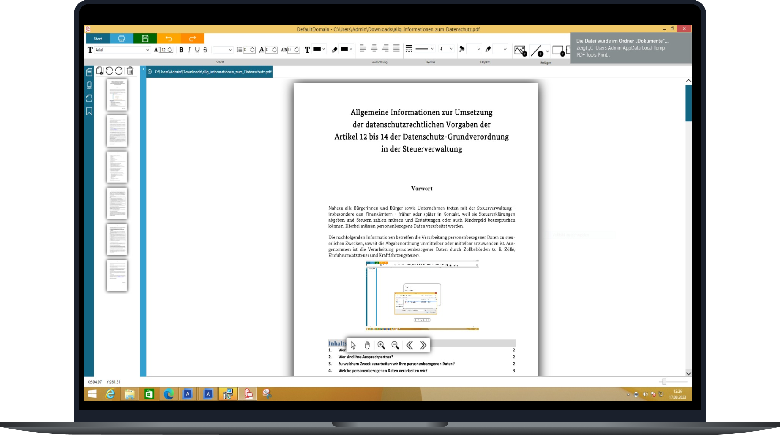 Un programme, d'innombrables possibilités : Avec PDFTool, vous pouvez non seulement ouvrir des fichiers PDF, mais aussi éditer, convertir et réorganiser vos fichiers. Découvrez les diverses options et voyez par vous-même.
