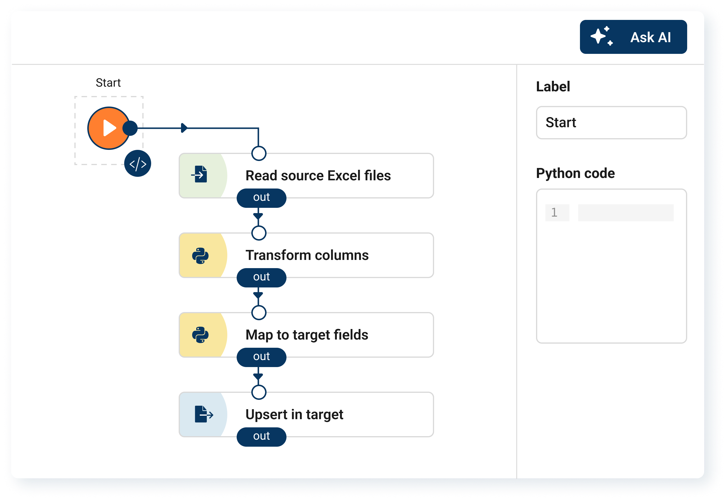 Peliqan n'est pas seulement un outil de pipeline de données ELT, c'est une solution complète pour l'orchestration, l'automatisation et l'activation des données. Peliqan agit également comme la fondation de données pour Agentic AI, garantissant que les agents IA travaillent avec des vues à 360° fiables et à jour des clients, produits, commandes, et plus encore - à la vitesse d'un entrepôt de données cloud.