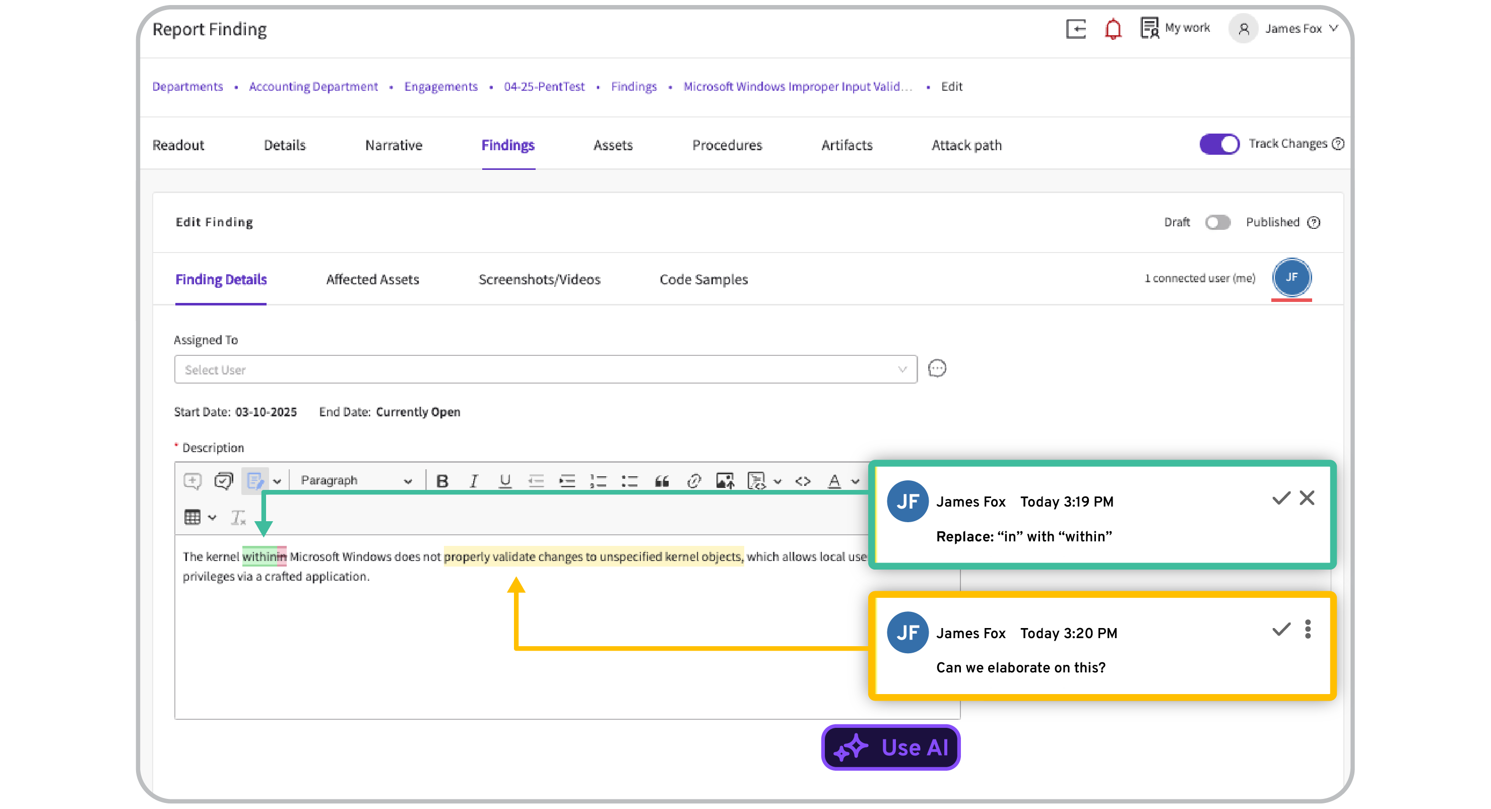 PlexTrac a été un véritable atout pour notre équipe et un investissement qui en vaut la peine. Les intégrations avec des outils comme Jira et Tenable réduisent considérablement les efforts manuels, diminuant le temps de rapport de plus de 20 heures pour des évaluations à grande échelle au niveau de l'entreprise impliquant des milliers d'actifs. Le système de modélisation est puissant, nous permettant de standardiser nos rapports tout en personnalisant entièrement l'apparence pour correspondre à notre image de marque. Nos clients commentent constamment à quel point les rapports sont clairs et professionnels. Nous utilisons PlexTrac pour la gestion des vulnérabilités, les tests d'intrusion et les évaluations de conformité comme le CMMC—sa flexibilité le rend précieux dans tous les domaines. Mention spéciale à Sara Petersen, qui a été une Customer Success Manager exceptionnelle et une partie clé de notre expérience positive avec la plateforme. Le support est également incroyable et si vous avez un problème critique, ils s'en occupent dans l'heure. Avis collecté par et hébergé sur G2.com.