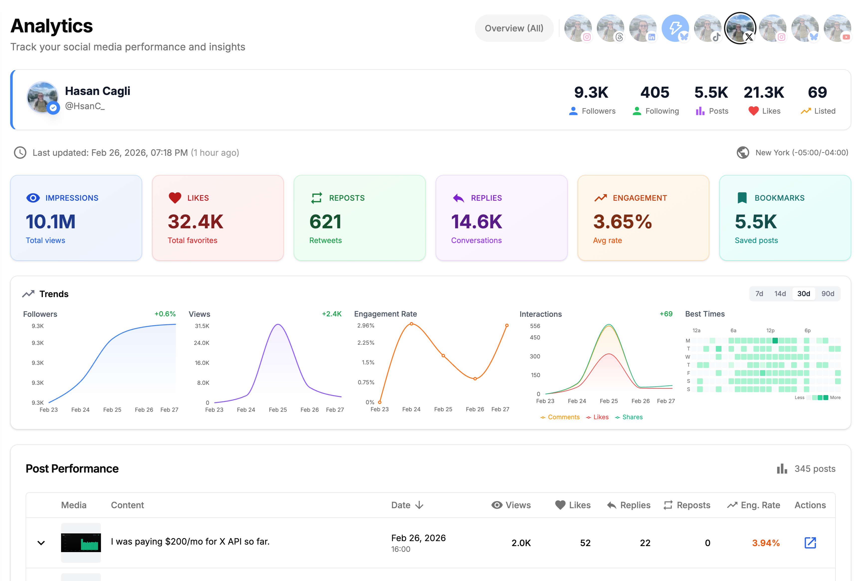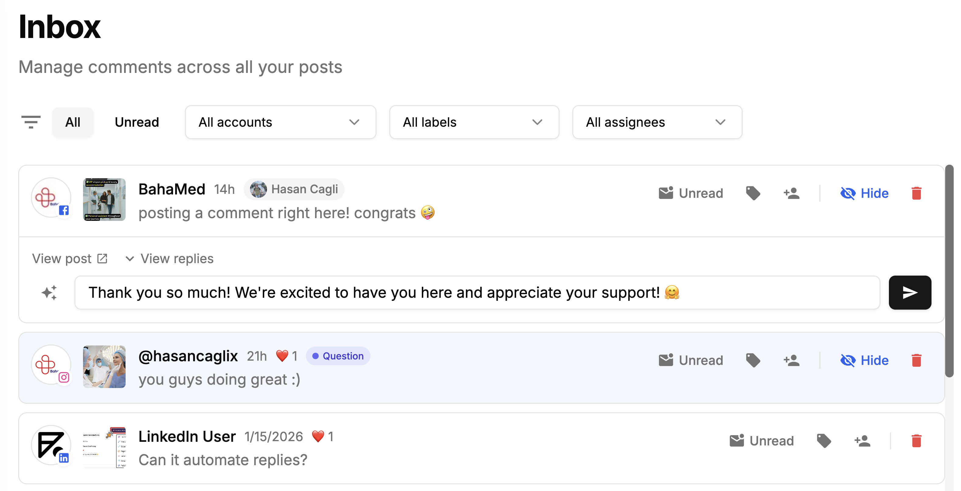 Planifiez des publications illimitées, gérez les réseaux sociaux, suivez les conversations et mesurez les performances depuis un tableau de bord unique.