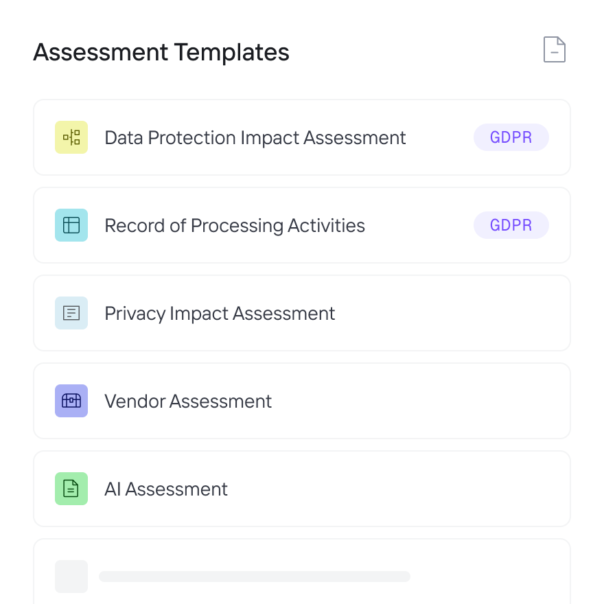 - Gestion des risques de confidentialité des fournisseurs : Centralisez les inventaires des fournisseurs et utilisez des évaluations pilotées par l'IA pour rationaliser l'intégration des fournisseurs, économisant du temps et des coûts tout en atténuant les risques.