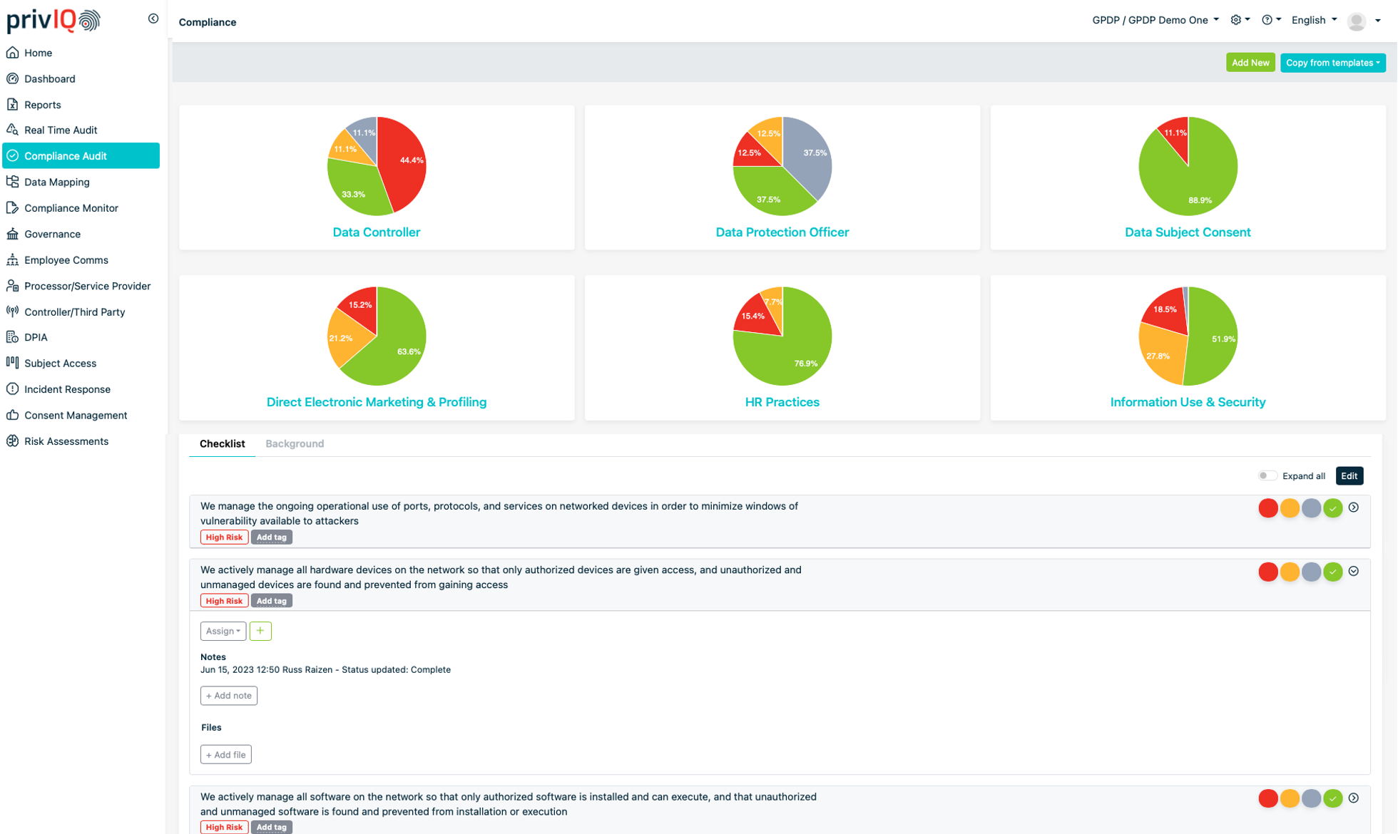 => Modèles structurés et flux de travail pour les évaluations d'impact sur la protection des données (DPIA), les évaluations des risques des fournisseurs et les vérifications de conformité.