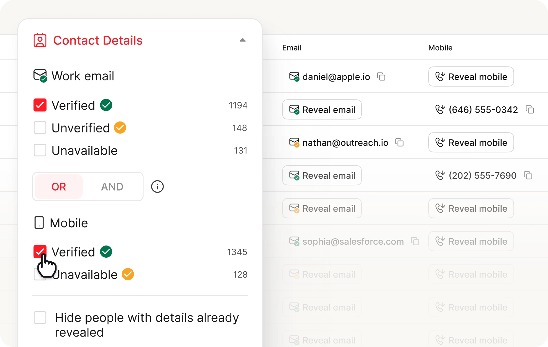 Actualité des données : L'ensemble de la base de données est actualisé sur un cycle hebdomadaire de 7 jours — comparé aux actualisations mensuelles ou trimestrielles typiques des plateformes traditionnelles — garantissant moins d'emails rejetés, moins de numéros déconnectés et moins de temps passé sur des enregistrements obsolètes.