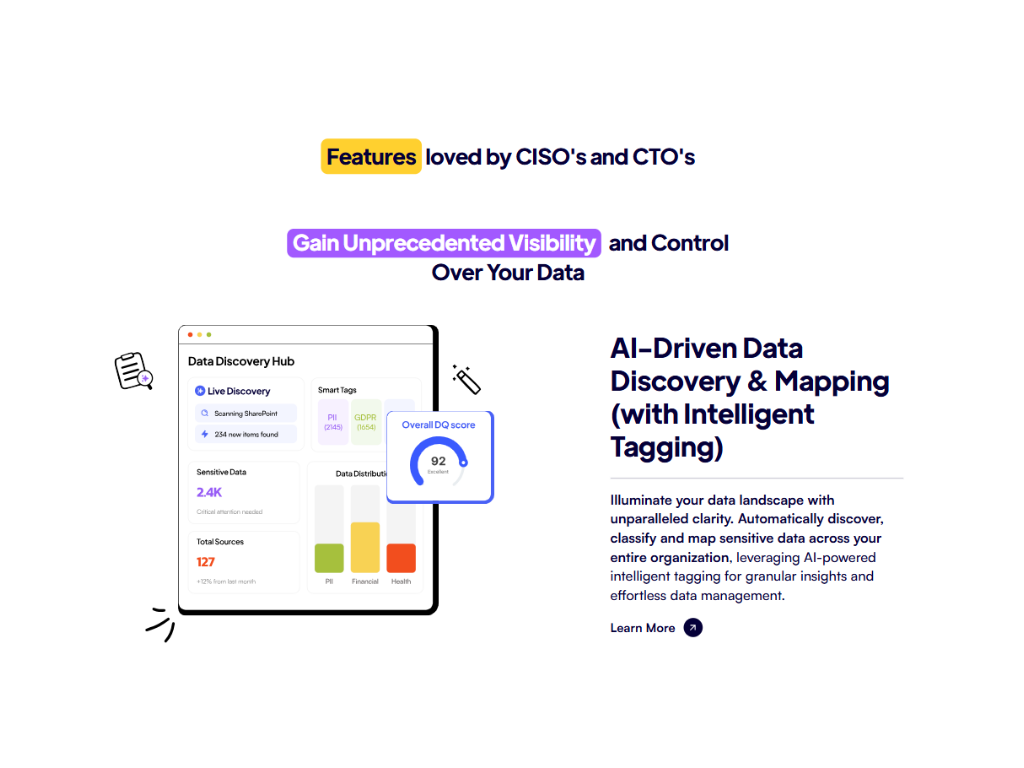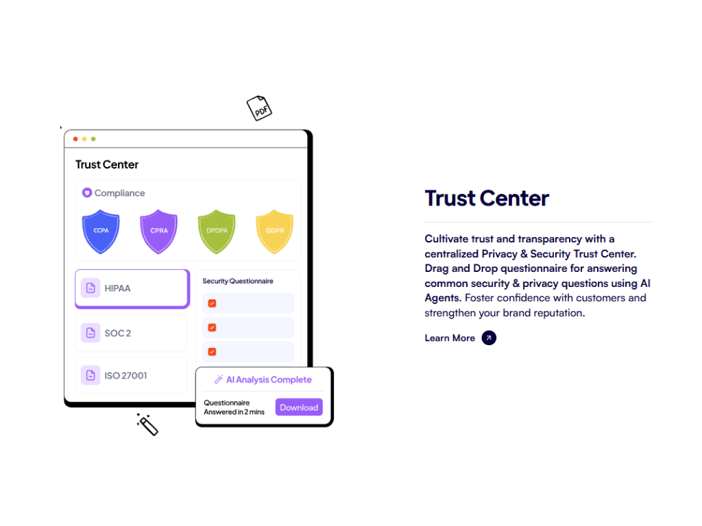 - Automatisation alimentée par l'IA : Automatisez les tâches chronophages telles que les demandes de droits des personnes concernées (DSR), les évaluations d'impact sur la vie privée (PIA) et la cartographie des données, entraînant des améliorations de productivité allant jusqu'à 75 %.