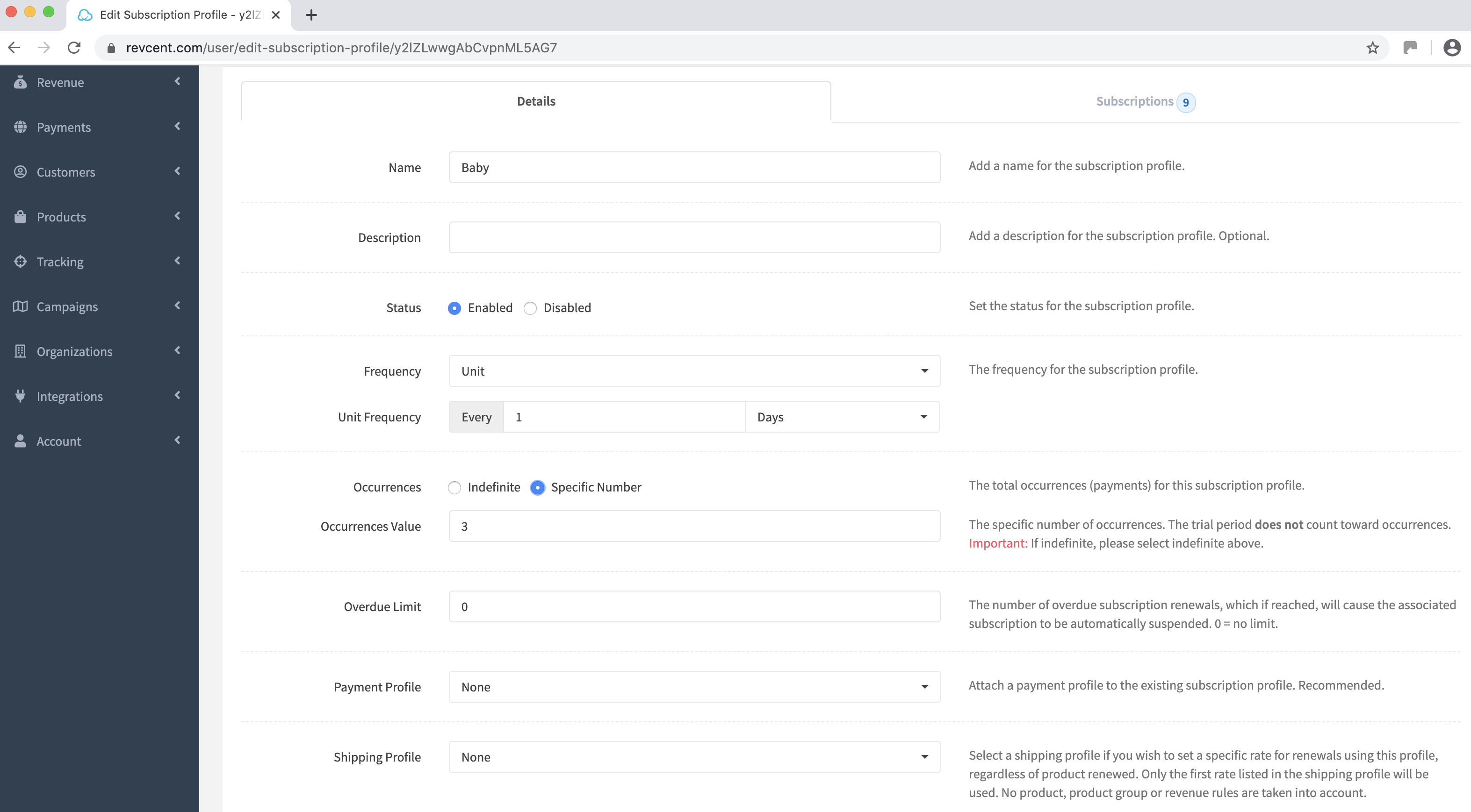 Gestion des abonnements et des offres d'essai : RevCent vous permet de créer facilement des offres d'abonnement et des essais, et vous offre une multitude d'outils pour prévenir les annulations et prolonger la valeur à vie de chaque client d'abonnement ou d'essai. Les outils de gestion des abonnements de RevCent offrent une grande flexibilité dans la gestion des abonnements et des essais.