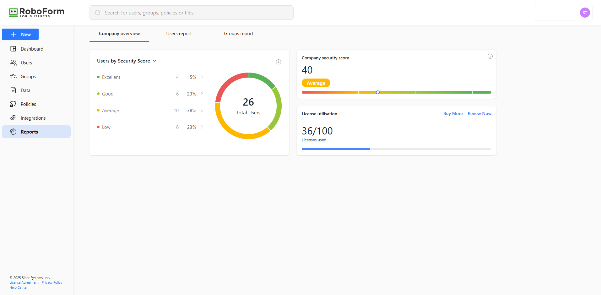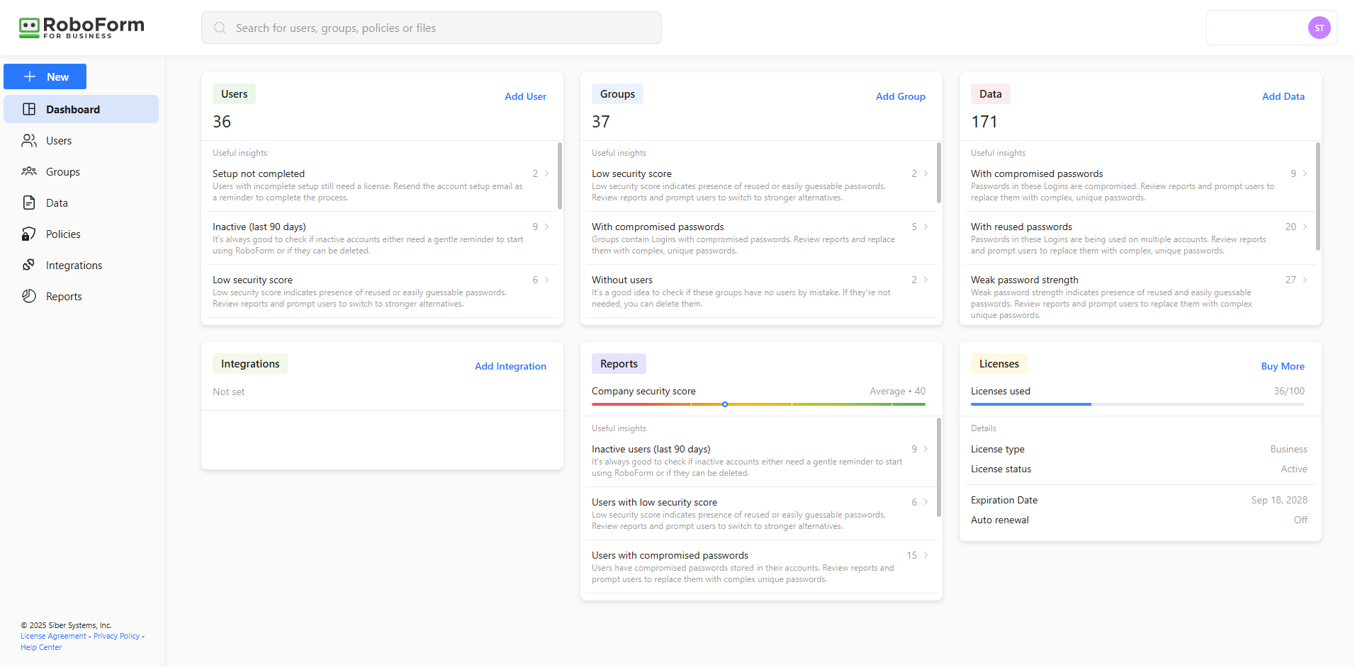Conçu pour les organisations de toutes tailles, RoboForm pour les entreprises sert à la fois les administrateurs informatiques et les utilisateurs finaux. Il est particulièrement précieux pour les entreprises qui priorisent la conformité réglementaire et des politiques de sécurité interne solides. Avec la fréquence croissante des cyberattaques et des violations de données, les entreprises ont de plus en plus besoin de solutions de mots de passe évolutives qui peuvent s'aligner sur les contrôles internes et les normes industrielles en évolution. RoboForm répond à cette demande grâce à une plateforme hautement configurable conçue pour soutenir des exigences de conformité diverses.