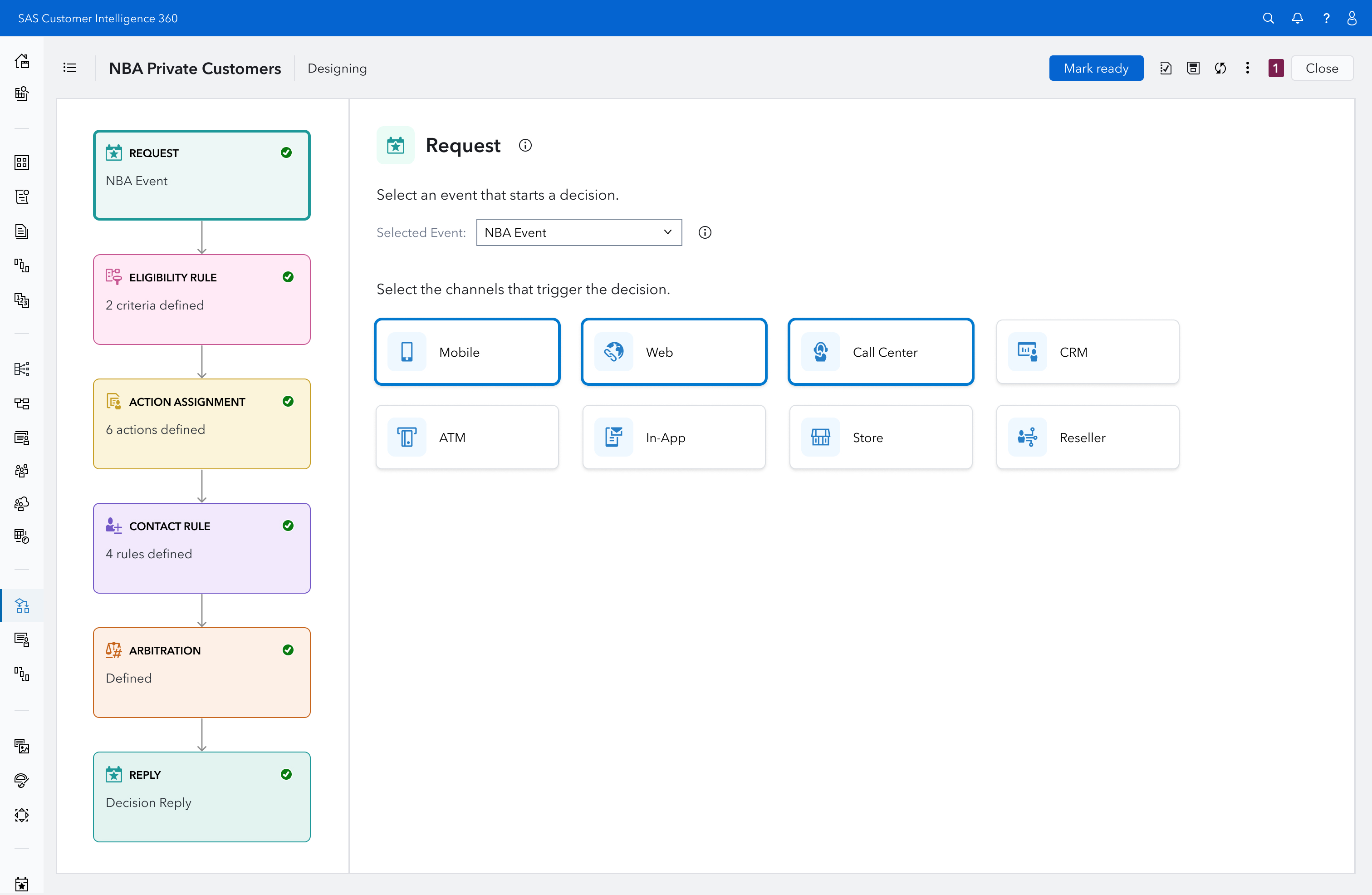 Les méthodologies de prise de décision avancées, allant des règles commerciales traditionnelles aux modèles d'IA sophistiqués, garantissent que chaque interaction client est pertinente et percutante. Cette capacité améliore non seulement l'efficacité des campagnes marketing, mais renforce également les relations entre les marques et leurs clients. En utilisant SAS Customer Intelligence 360, les organisations peuvent élever leurs efforts marketing, en offrant des expériences significatives et personnalisées qui résonnent avec leur audience.