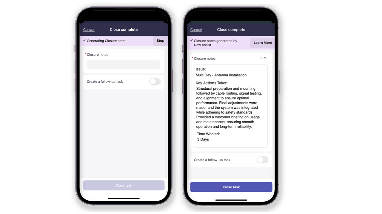 • L'IA générative accélère l'achèvement des ordres de travail, automatise la documentation et crée instantanément des articles de connaissance, libérant ainsi les techniciens pour se concentrer sur la résolution des problèmes des clients au lieu de la paperasse.