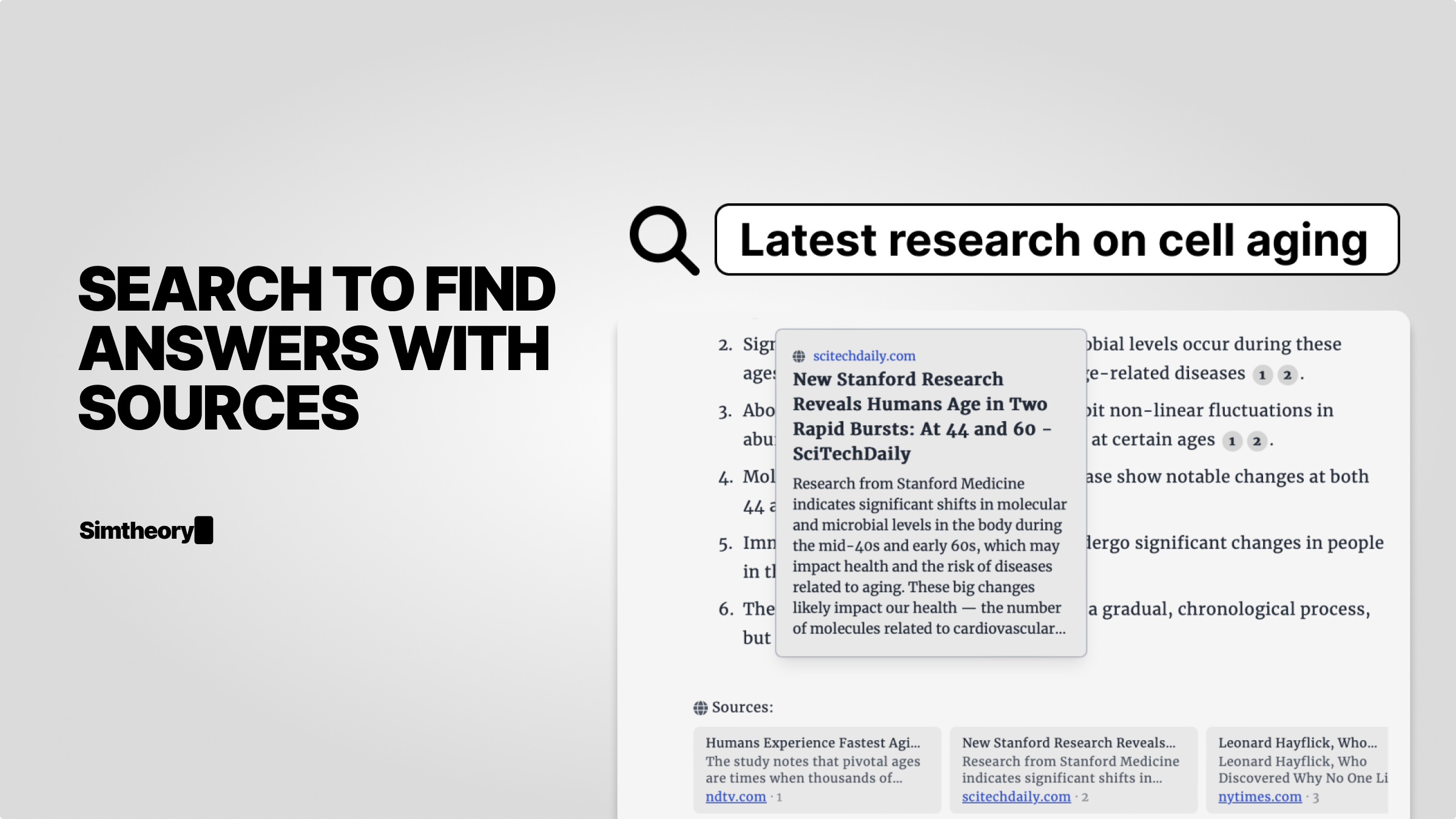 Enhance your team's productivity with Simtheory's AI-powered search and analysis tools. Quickly find and extract insights from various sources, allowing your team to make informed decisions faster and more effectively.