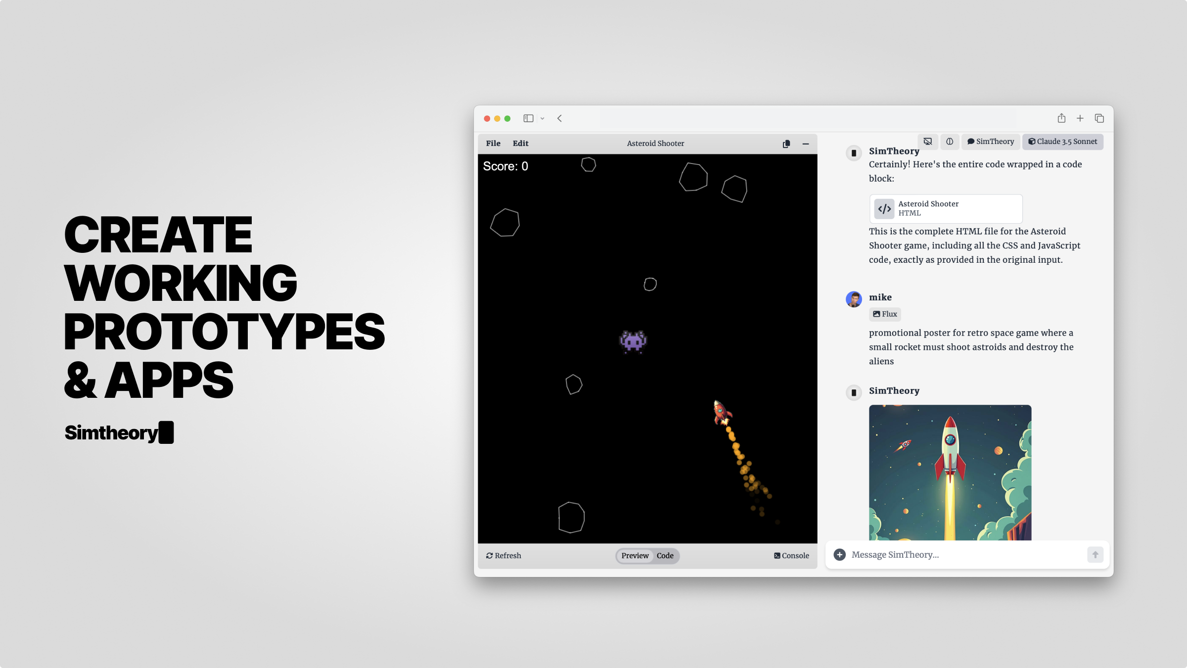 Simtheory empowers teams to quickly create website, landing page, and app prototypes without coding. Our AI-assisted design tools help you visualize and iterate on ideas faster, streamlining the concept-to-prototype process for more efficient testing and development.