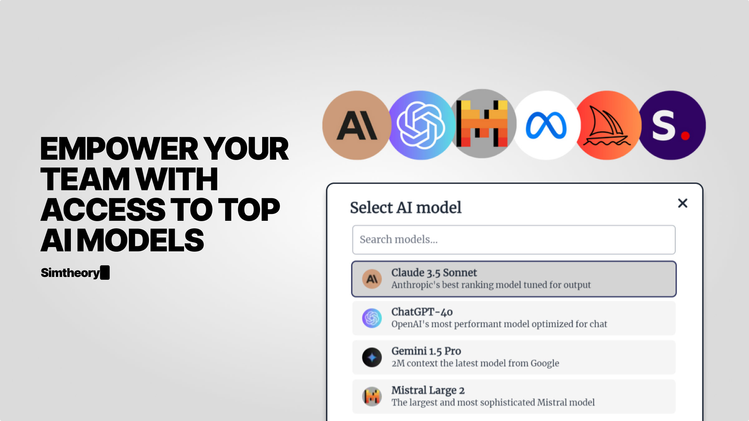 Unlike ChatGPT or Microsoft Copilot, Simtheory isn't locked to a single AI model. Our platform gives your team the flexibility to leverage various top-tier AI models and capabilities all in one workspace. This versatility ensures you always have the best AI tools at your disposal, enhancing your ...