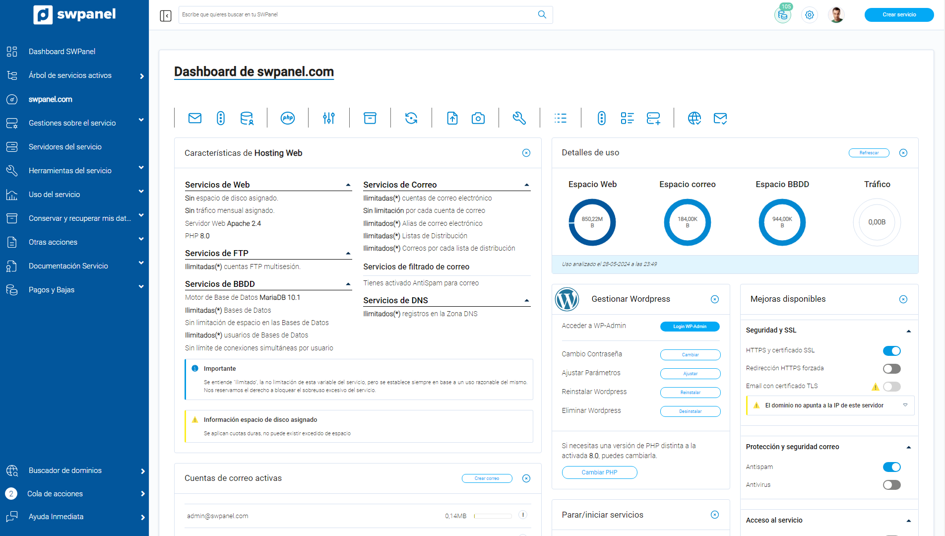 SWPanel est un panneau de contrôle avancé, robuste et innovant qui permet la gestion centralisée de l'hébergement, de l'infrastructure, de l'auto-hébergement, du cloud, du courrier, des certificats, des domaines, des bases de données et bien plus encore.