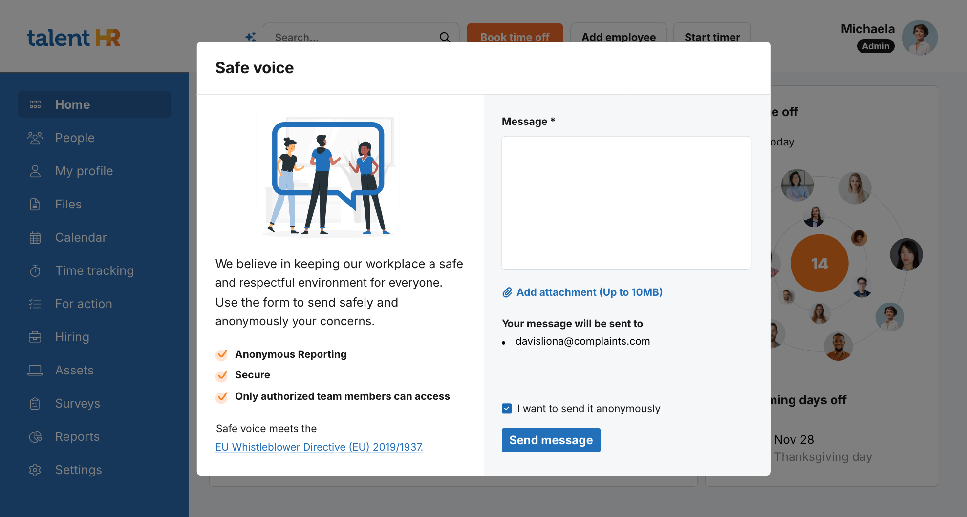 Thanks so much for the review, George! We’re really glad TalentHR feels clean, simple, and easy to adopt, and that it’s helped you bring employee info, time off, hiring, reviews, surveys (and even whistleblowing) into one place without juggling extra tools.