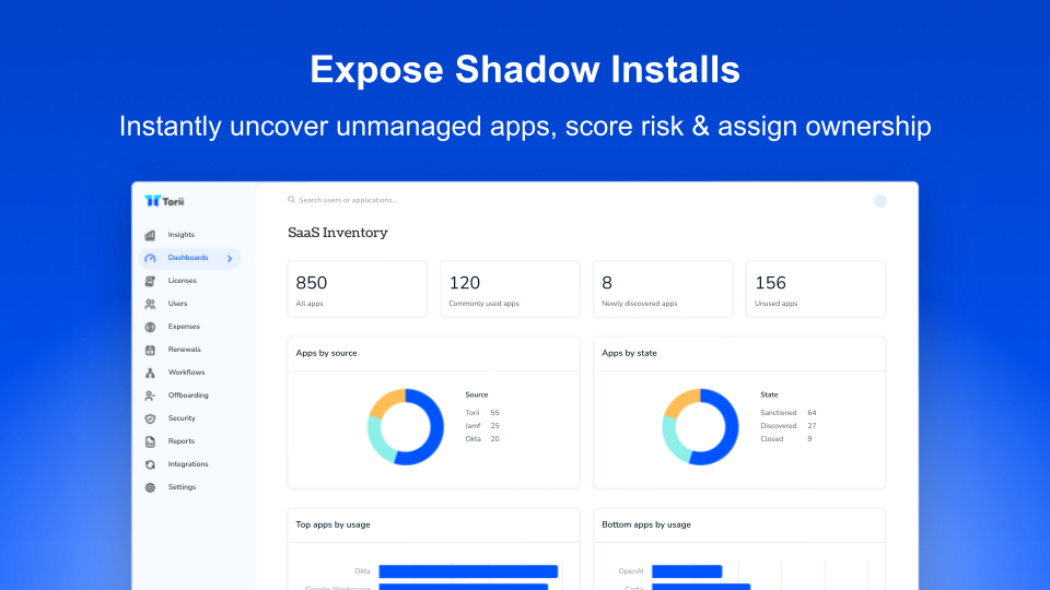 Torii nous permet d'identifier et de comprendre toutes les applications SaaS utilisées dans notre environnement, l'étendue de leur utilisation et leurs coûts associés. Maintenant, nous ne savons pas seulement qu'elles sont utilisées, mais nous comprenons mieux comment et pourquoi elles sont utilisées. La validation des données provenant de plusieurs sources aide à construire et à comprendre ces associations et les coûts réels. Nous classons ensuite les applications identifiées en fonction de plusieurs facteurs, tels que leur statut d'approbation, le risque pour l'entreprise, qui les utilise, etc.