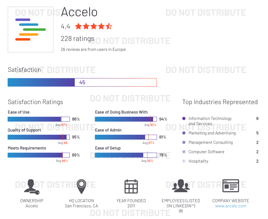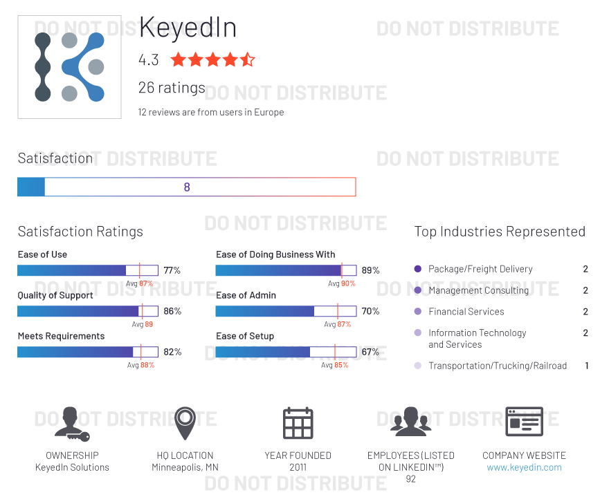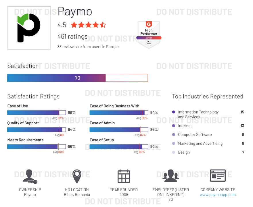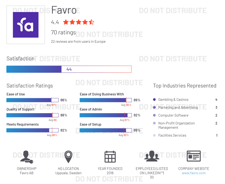Our G2 staff does not add any subjective input to the ratings, which are determined algorithmically based on data aggregated from publicly available online sources and social networks. Vendors cannot influence their ratings by spending time or money with us. Only the opinion of real users and data from public sources factor into the ratings.