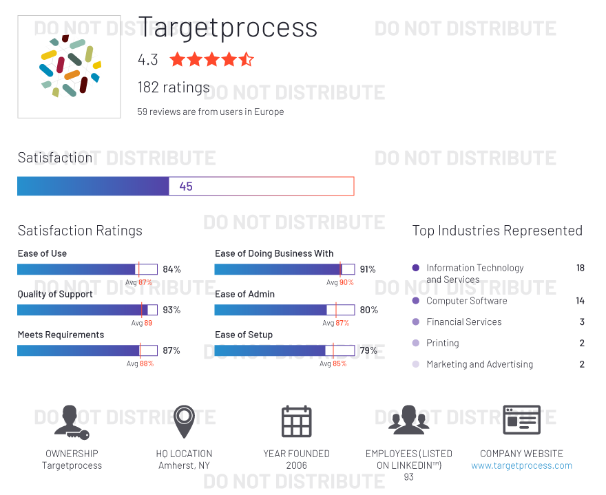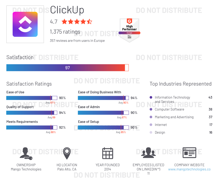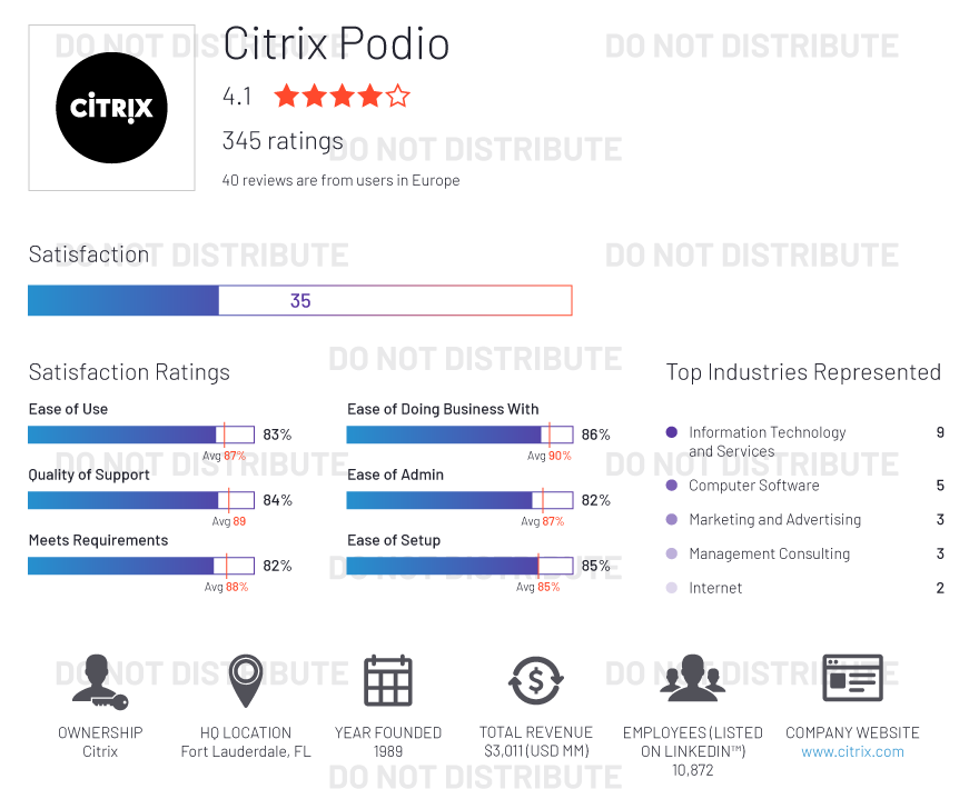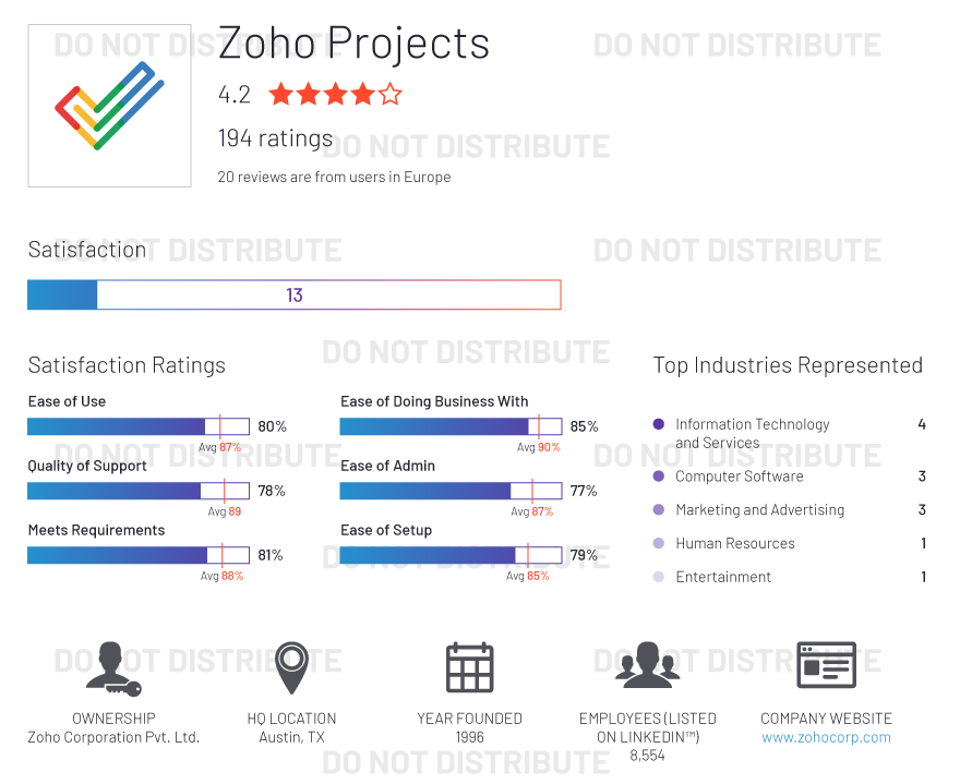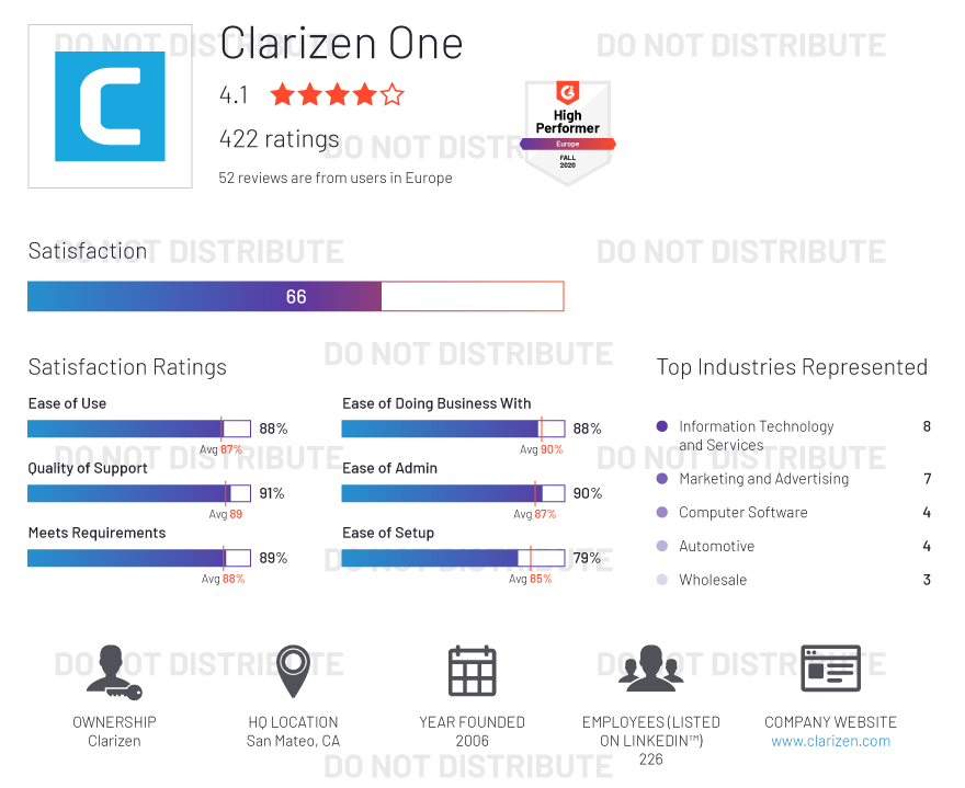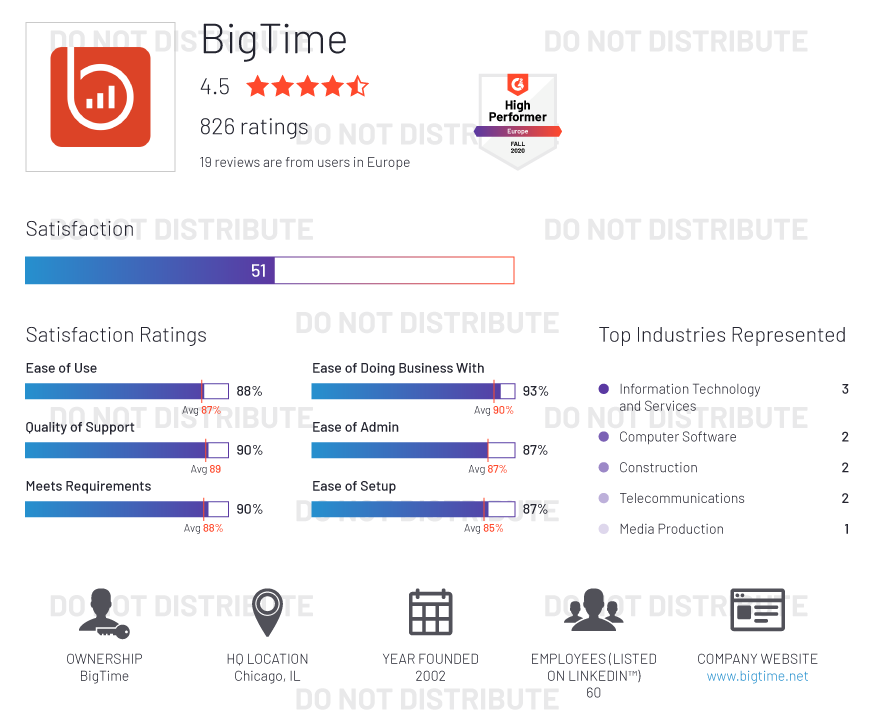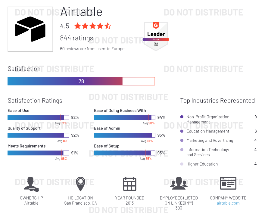 G2 rates products and vendors based on reviews gathered from our user community, as well as data aggregated from online sources and social networks. We apply unique algorithms (v4.0) to this data to calculate the Satisfaction and Market Presence scores in real time. The Europe Regional Grid® Report for Project Management | Fall 2020 is based on scores calculated using G2 algorithms v4.0 from reviews collected through September 2, 2020.