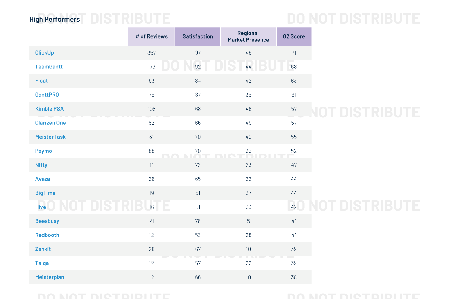 The ratings in this report are based on a snapshot of the user reviews and social data collected by G2 up through September 2, 2020. The ratings may change as the products are further developed, the vendors grow, and as additional opinions are shared by users. G2 updates the ratings on its website in real time as additional data is received, and this report will be updated as significant data is received. By improving their products and support and/or by having more satisfied customer voices heard, Contenders may become Leaders and Niche vendors may become High Performers.