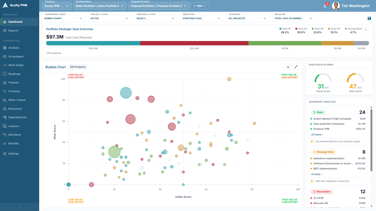 L'aspetto migliore di Acuity PPM è la sua semplicità e accessibilità per l'acquisizione e il monitoraggio di base dei progetti. La piattaforma facilita agli utenti aziendali l'invio di richieste e ai team il monitoraggio del lavoro senza richiedere una formazione estensiva o una configurazione complessa.