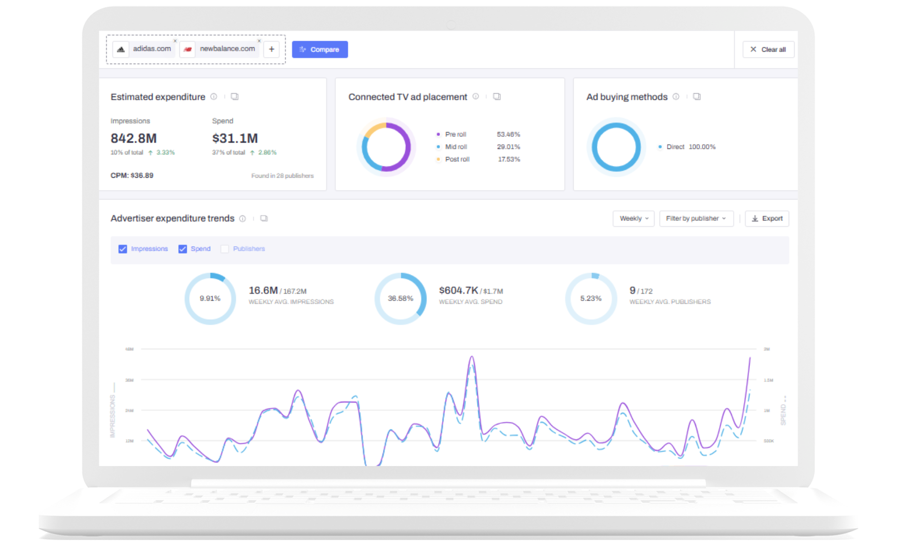 AdClarity offre un'istantanea robusta di ciò che i concorrenti stanno facendo su display, social, video e CTV. Per la nostra agenzia, è indispensabile nella preparazione delle presentazioni per i clienti e per rimanere al passo con i cambiamenti del mercato. I filtri e la funzionalità di ricerca della piattaforma sono molto utili per restringere le campagne per settore, geografia e formato. Recensione raccolta e ospitata su G2.com.