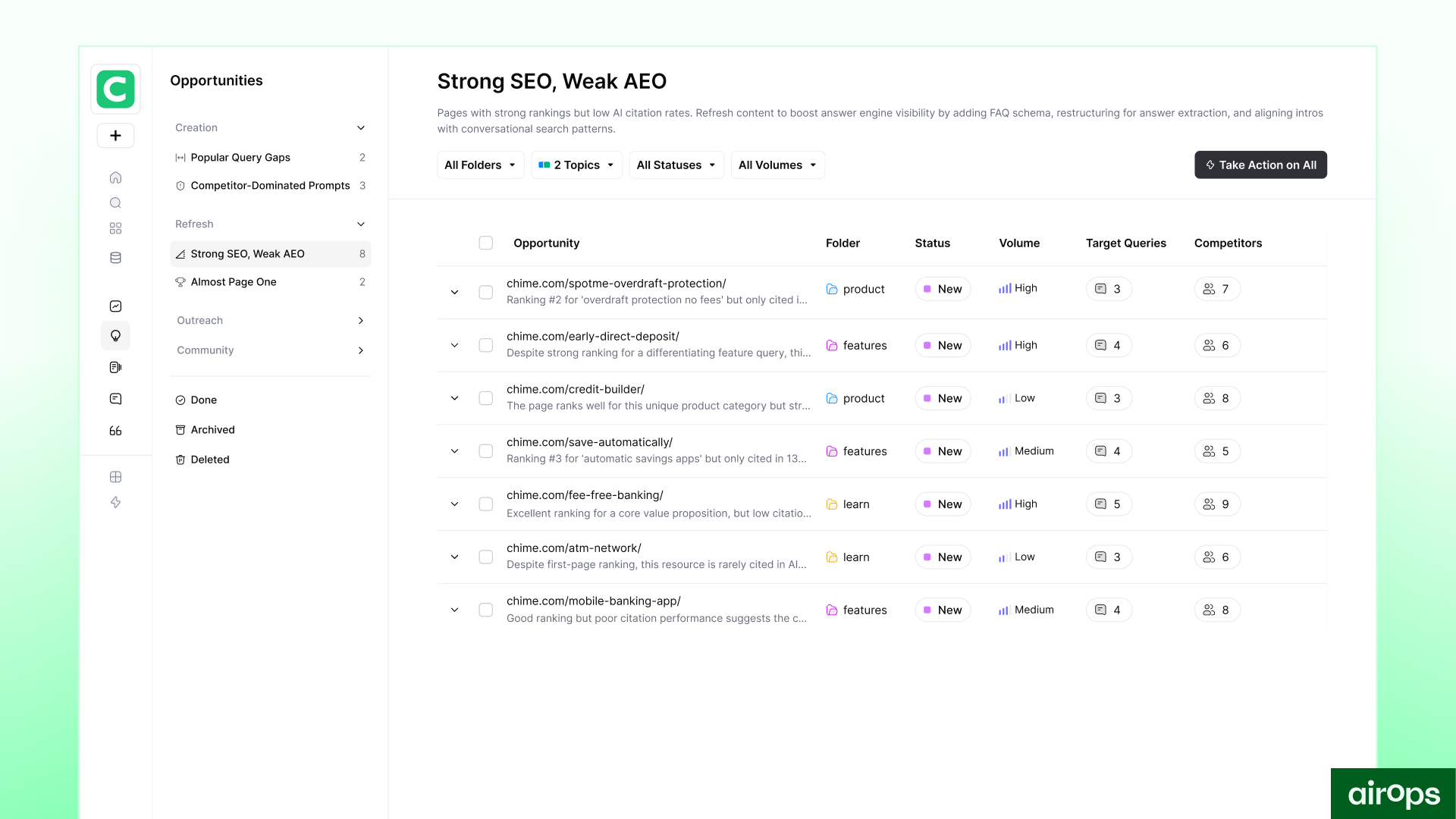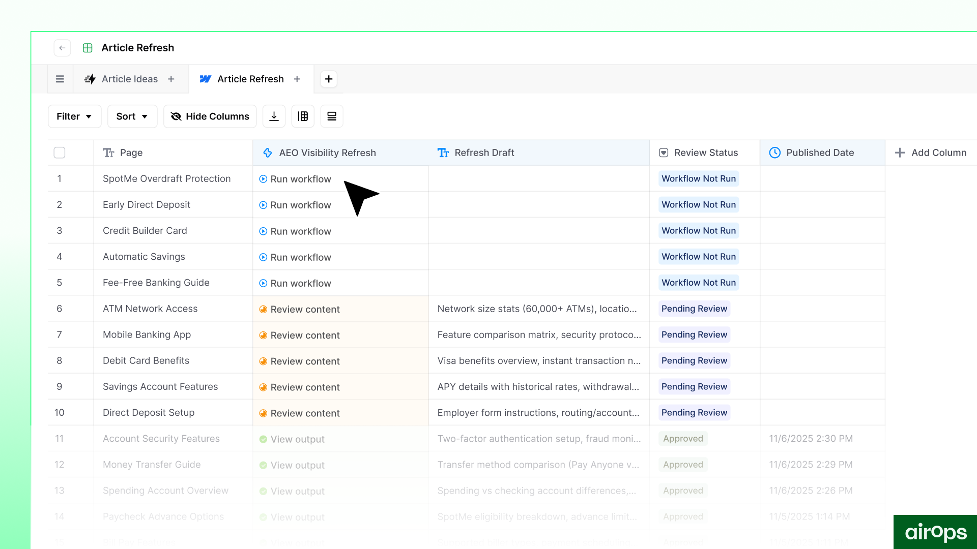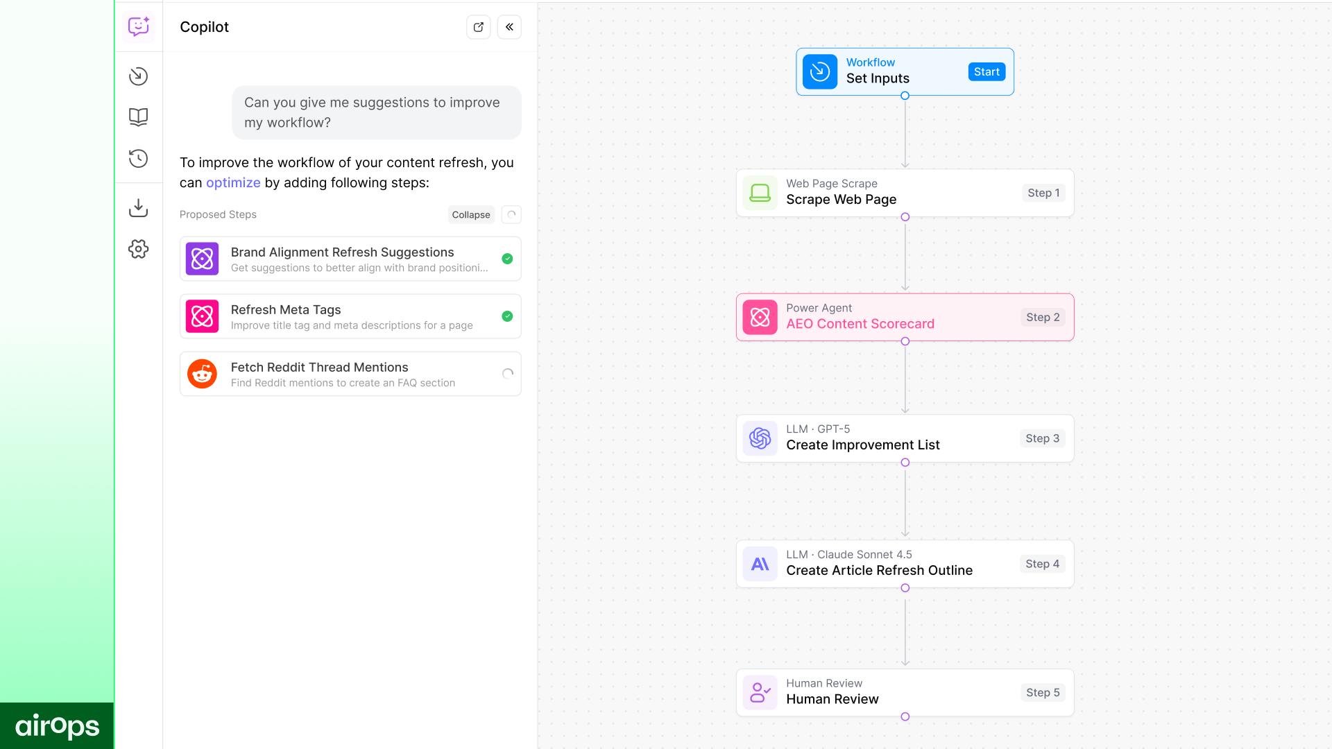 Inoltre, il nostro team include alcune persone che non sono molto esperte di tecnologia. AirOps l'ha reso semplice e facile da usare. Il team di supporto che ci ha aiutato a configurare tutti i nostri flussi di lavoro è stato inestimabile! Recensione raccolta e ospitata su G2.com.