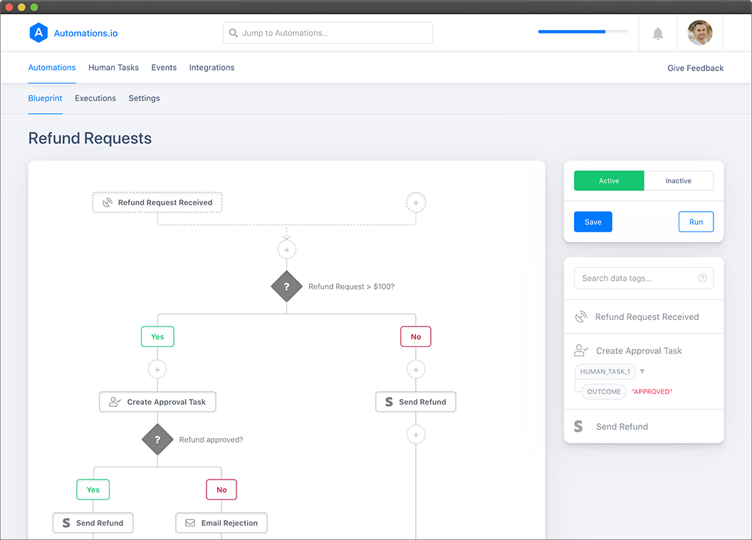 La piattaforma di automazione del flusso di lavoro a basso codice di ProcessMaker consente agli utenti aziendali di progettare e implementare rapidamente soluzioni a problemi complessi di flusso di lavoro in ore, non mesi.
