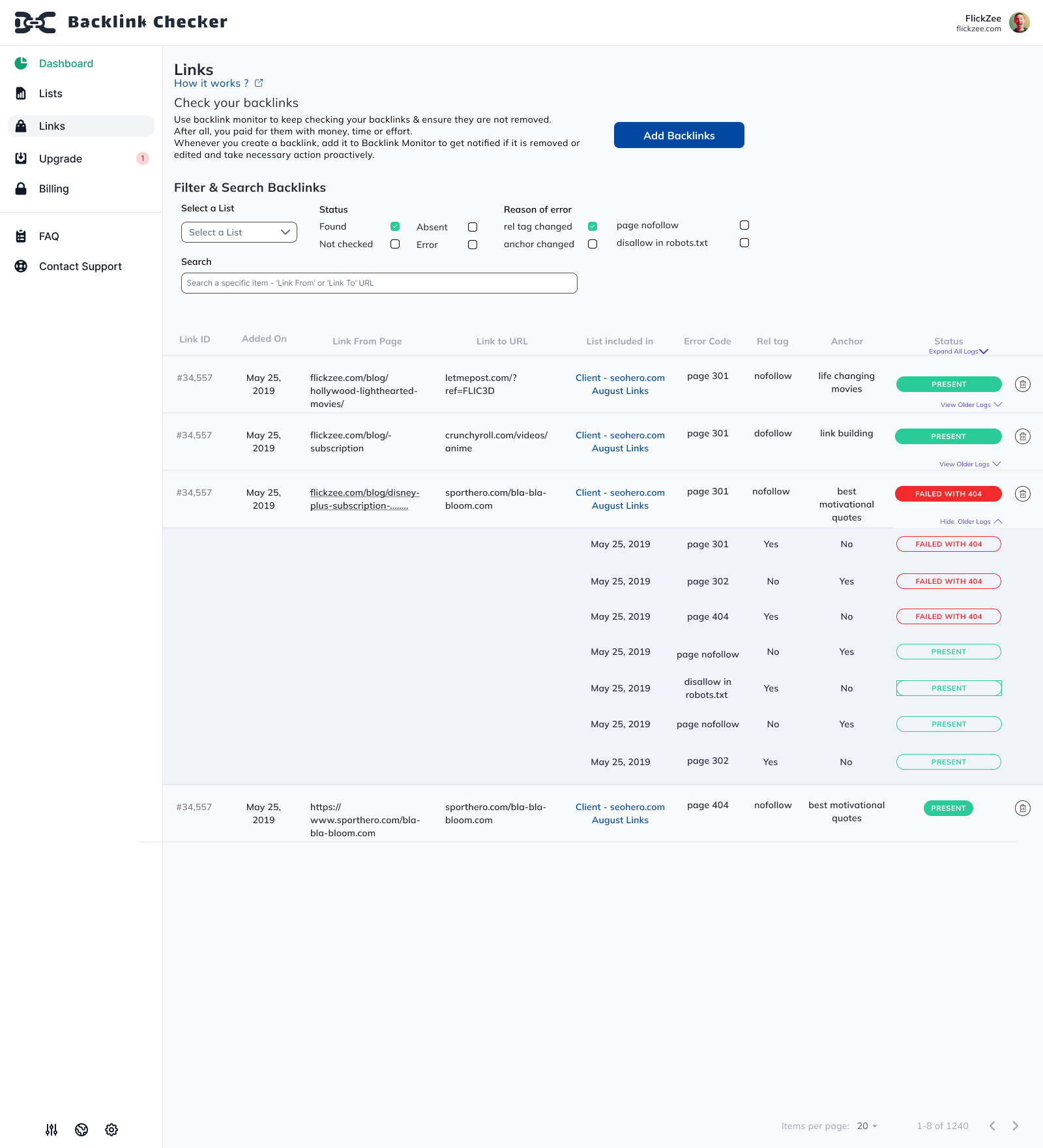 Aiuta l'utente a controllare lo stato dell'indice dei propri backlink. Inoltre, si possono scoprire nuovi backlink. Gli aggiornamenti regolari e i registri sono altre caratteristiche distintive. Recensione raccolta e ospitata su G2.com.