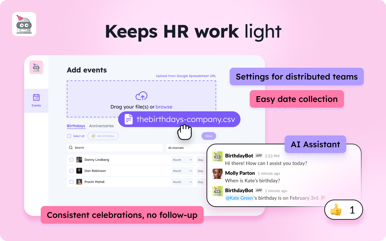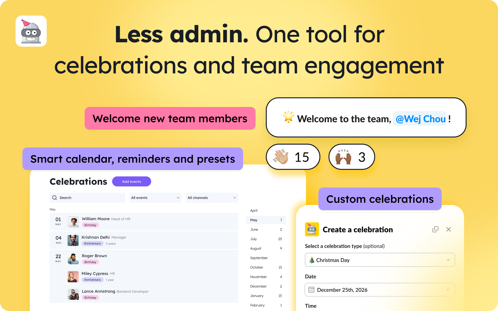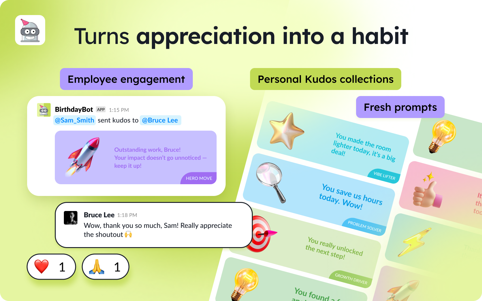 Ho trovato BirthdayBot estremamente sdolcinato in termini di messaggi. Detto ciò, era così sdolcinato che risultava quasi affettuoso per i miei colleghi. L'hanno adorato. Recensione raccolta e ospitata su G2.com.