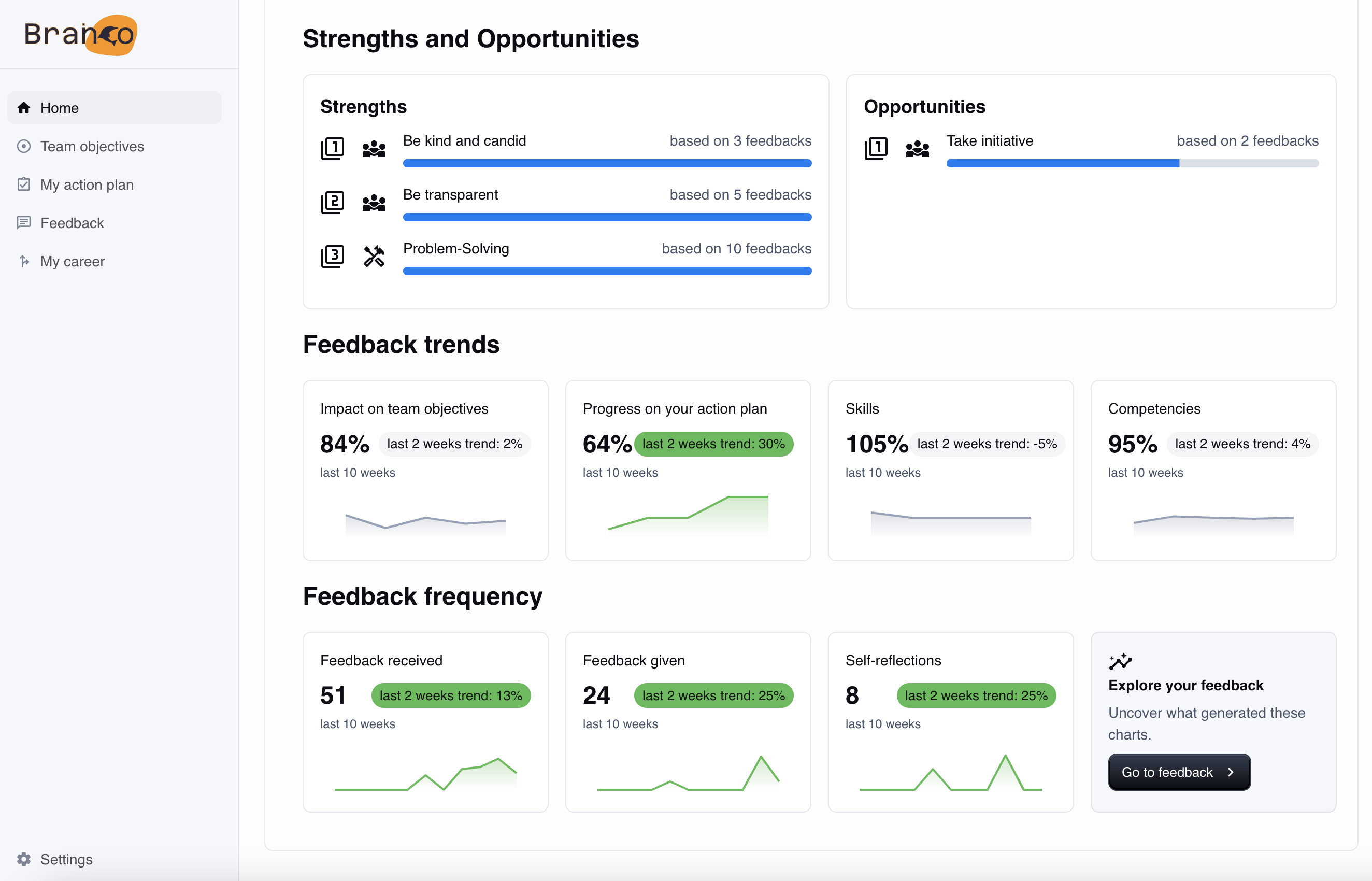 - Fa un ottimo lavoro nell'aiutare le persone a imparare a dare feedback migliori