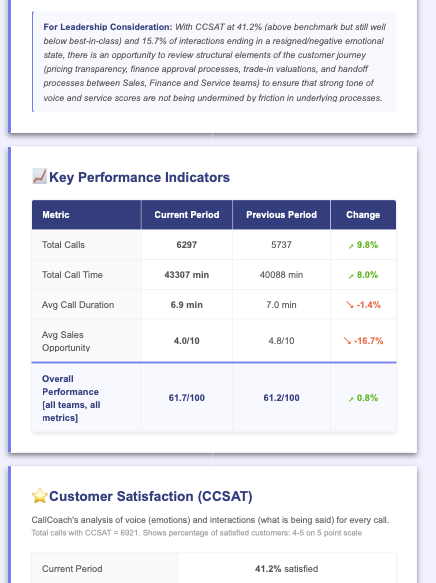 Le organizzazioni che utilizzano CallCoach spesso sperimentano miglioramenti significativi nei principali indicatori di prestazione, con aumenti riportati del 20 al 30 percento nelle prime sei settimane di implementazione. Questo si traduce in tassi di chiusura più alti e una risoluzione dei problemi più rapida, rendendo la piattaforma un asset prezioso per qualsiasi organizzazione focalizzata sul cliente.