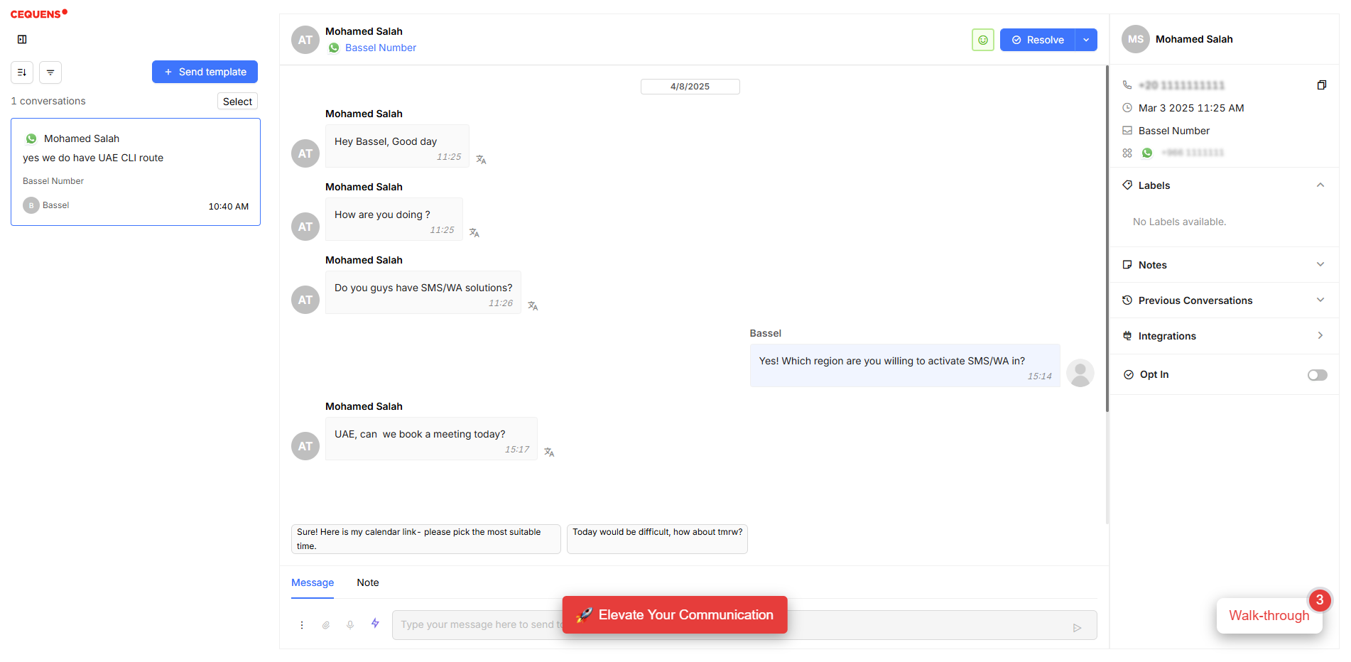 Con una portata globale che include la connettività diretta in oltre 107 paesi e una comprovata esperienza nel servire più di 1200 aziende, CEQUENS si distingue nel panorama delle comunicazioni. La piattaforma vanta una tecnologia leader del settore con un uptime del 99,96% e aderisce ai più alti standard di sicurezza. Come azienda certificata ISO e conforme al PCI DSS, CEQUENS è riconosciuta come un partner fidato nel settore, ulteriormente consolidato dal suo status di Meta Business Partner e fornitore di servizi a valore aggiunto per Microsoft Teams Phone e WhatsApp Business. Questi attributi collettivamente posizionano CEQUENS come una scelta affidabile per le aziende che cercano di migliorare le loro capacità di comunicazione e promuovere connessioni più profonde con i loro clienti.
