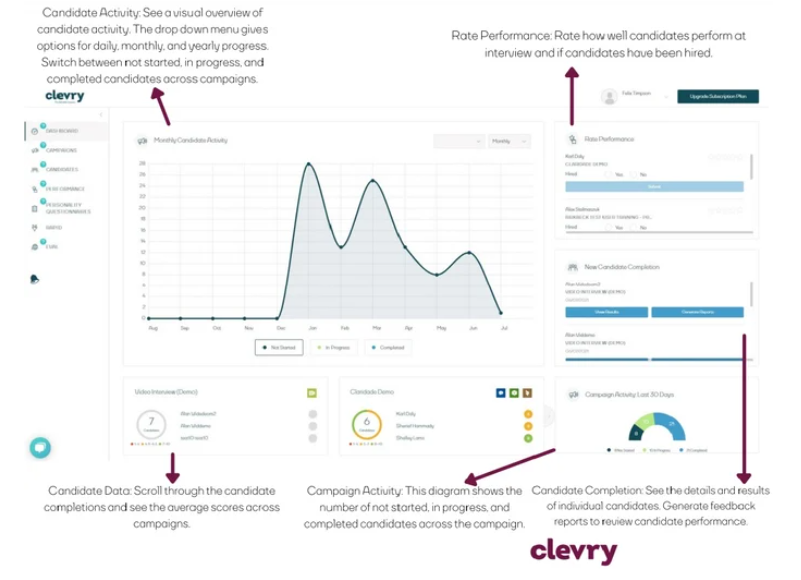 Clevry vanta anche una libreria completa di valutazioni sia pronte all'uso che personalizzabili, coprendo vari aspetti come abilità cognitive, motivazione e scale di personalità. Questa versatilità significa che una singola valutazione può produrre più tipi di report su misura per diverse applicazioni, tra cui assunzioni, onboarding, team, analisi delle vendite e della leadership, e sviluppo personale. Gli strumenti di reporting della piattaforma traducono dati di valutazione complessi in intuizioni chiare e azionabili, migliorando il processo decisionale per i professionisti delle risorse umane e i responsabili delle assunzioni.