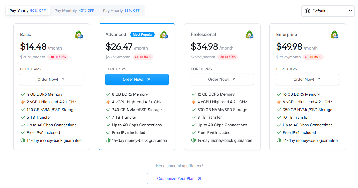 Diversi Casi d'Uso: Puoi scegliere tra Linux VPS, Windows VPS, RDP VPS, Forex VPS o Cloud Servers, ciascuno adattato a diversi casi d'uso.