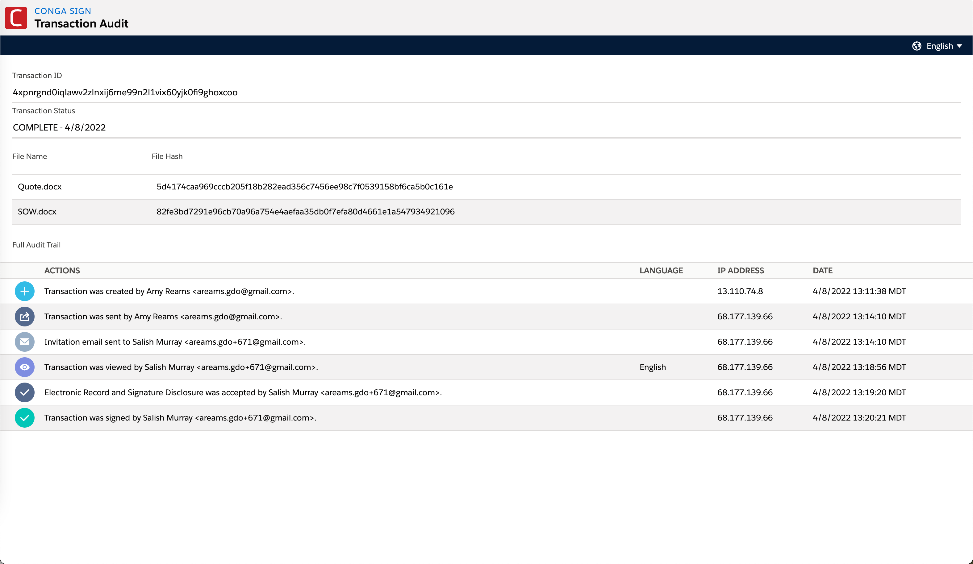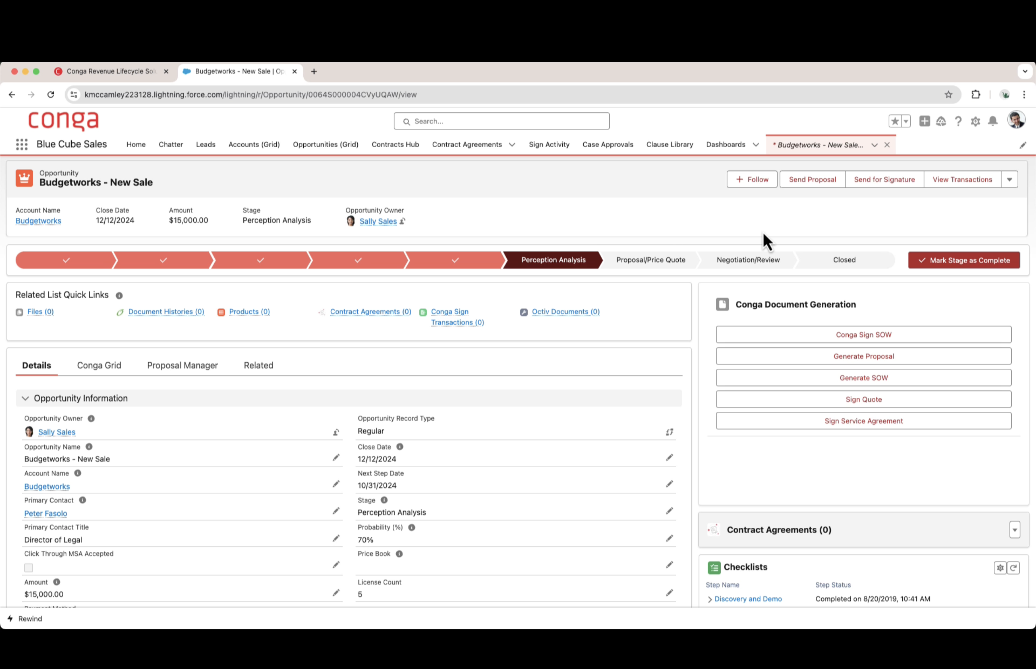 A differenza degli strumenti di firma elettronica standalone, Conga Sign è progettato appositamente come parte di una piattaforma unificata del ciclo di vita dei ricavi—consentendo alle aziende di automatizzare non solo le firme, ma l'intero percorso del documento dalla creazione al completamento. Le nostre integrazioni strette con Conga Composer, Conga Contracts e Salesforce garantiscono un'esperienza senza attriti e un tempo di valore più rapido.