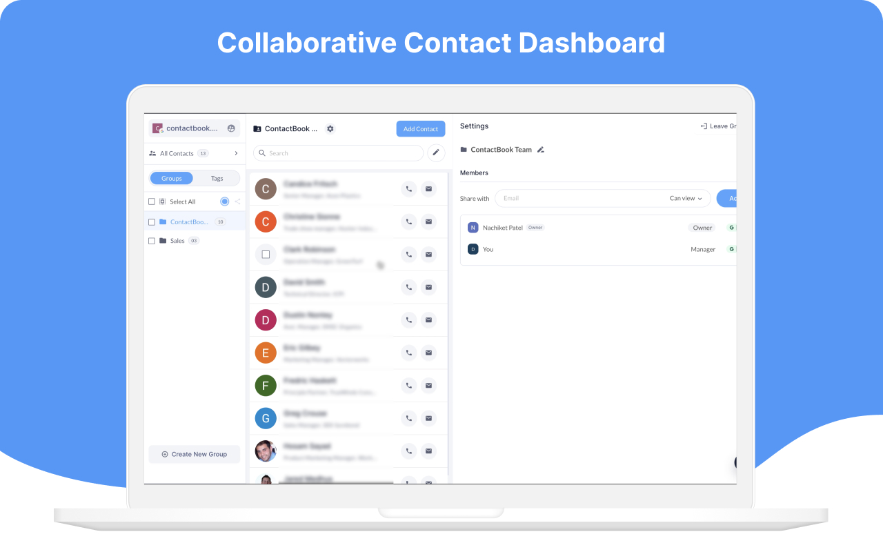 Essendo un'agenzia, avevamo bisogno di centralizzare i nostri contatti aziendali e condividerli con le persone rilevanti. Con ContactBook, posso gestire la nostra directory dei dipendenti e altri contatti importanti in gruppi come clienti, membri del team cliente, fornitori, freelance ecc. e mantenere quei gruppi condivisi tra i membri del mio team in modo che abbiano sempre contatti aggiornati. Utilizziamo anche il loro modulo di sincronizzazione con Google Workspace che mantiene i contatti sincronizzati su tutti i nostri account Google. Recensione raccolta e ospitata su G2.com.