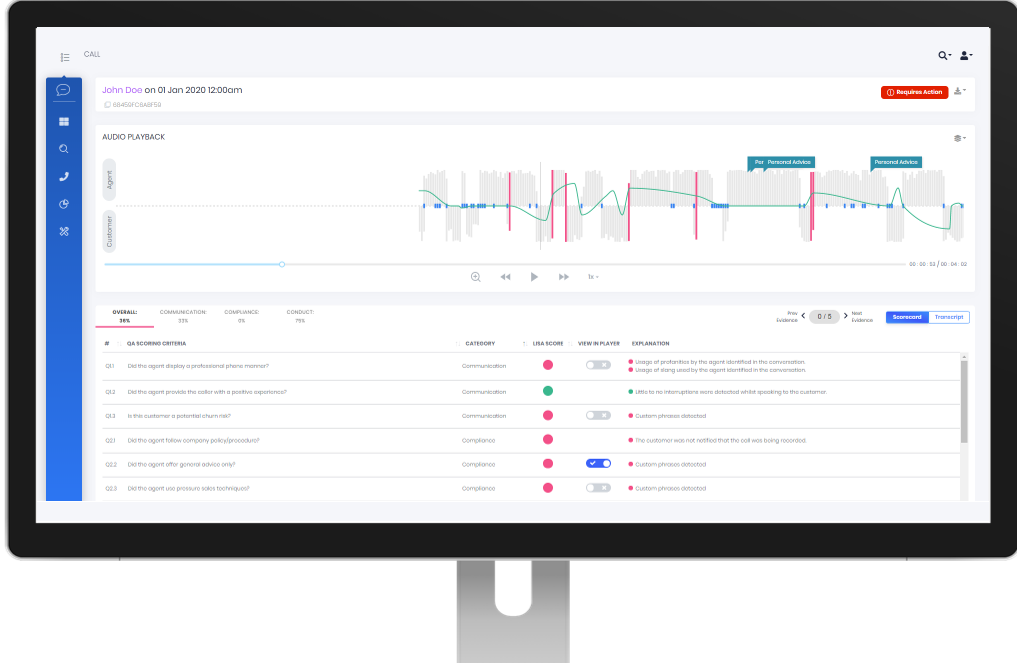 • Analisi delle conversazioni, alimentata da trascrizioni, potente IA e schede di valutazione delle chiamate automatizzate che sono personalizzate per le esigenze specifiche della tua azienda